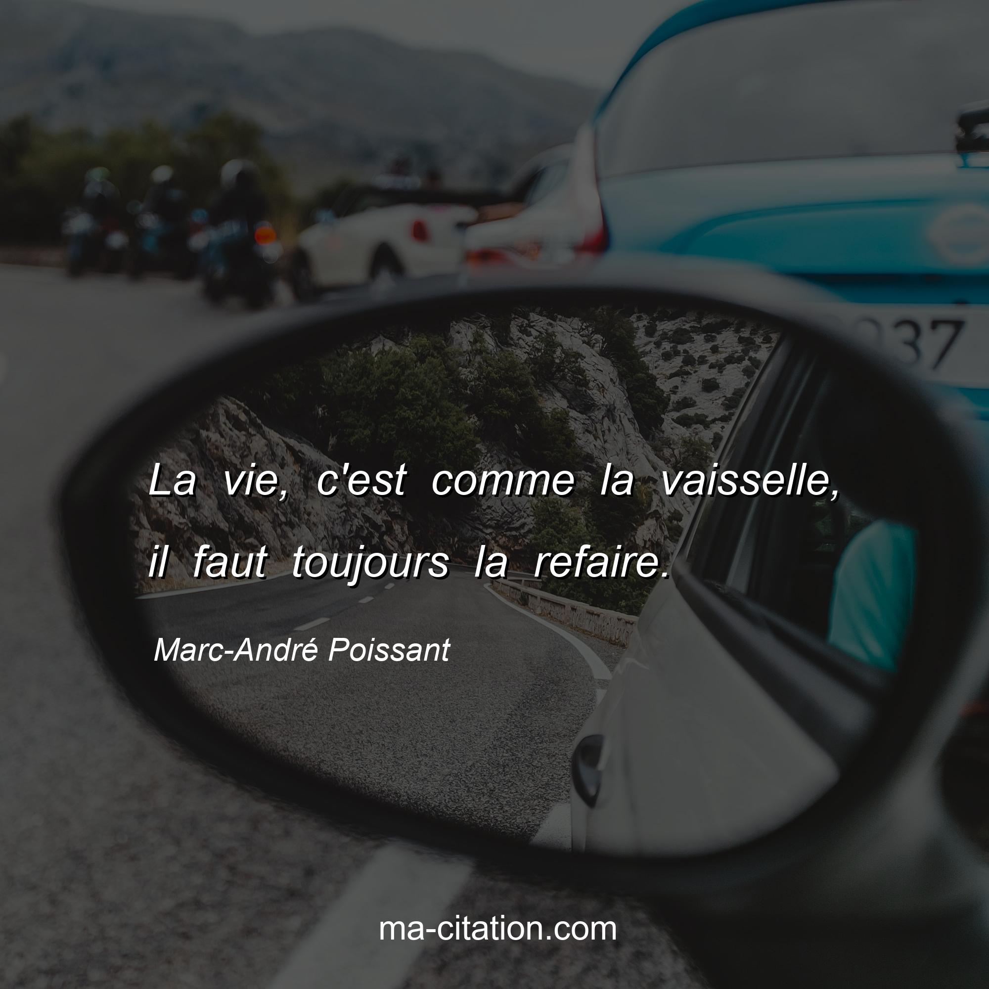 Marc-André Poissant est l'auteur de la citation sur la vie "La vie, c'est comme la vaisselle, il faut toujours la refaire.".