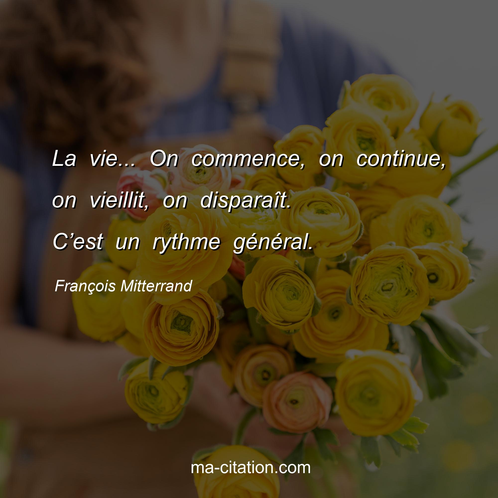 Citation sur la vie de François Mitterrand :La vie... On commence, on continue, on vieillit, on disparaît. C’est un rythme général.