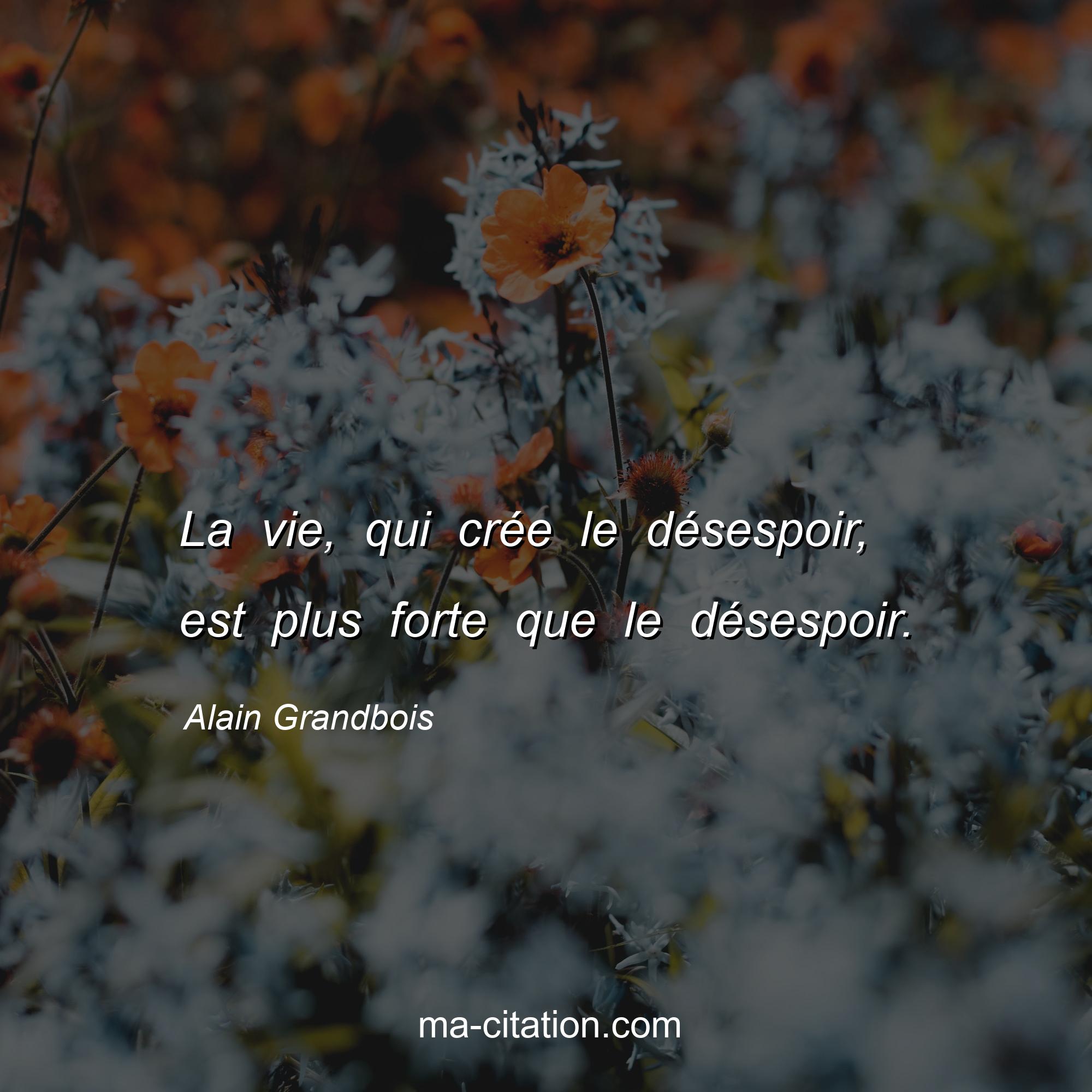 Citation sur la vie d'Alain Grandbois :La vie, qui crée le désespoir, est plus forte que le désespoir.