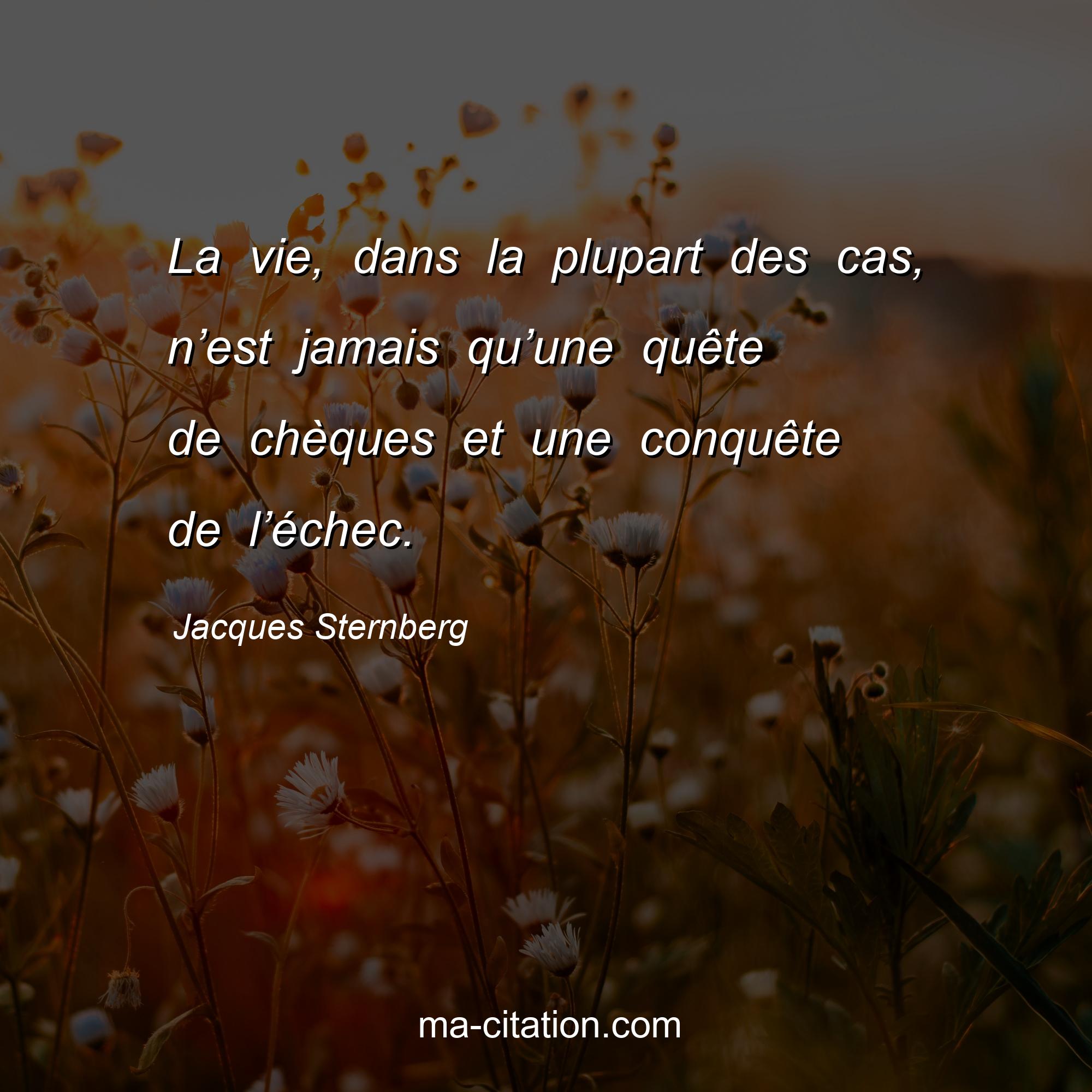 Jacques Sternberg est l'auteur de la citation sur la vie "La vie, dans la plupart des cas, n’est jamais qu’une quête de chèques et une conquête de l’échec.".