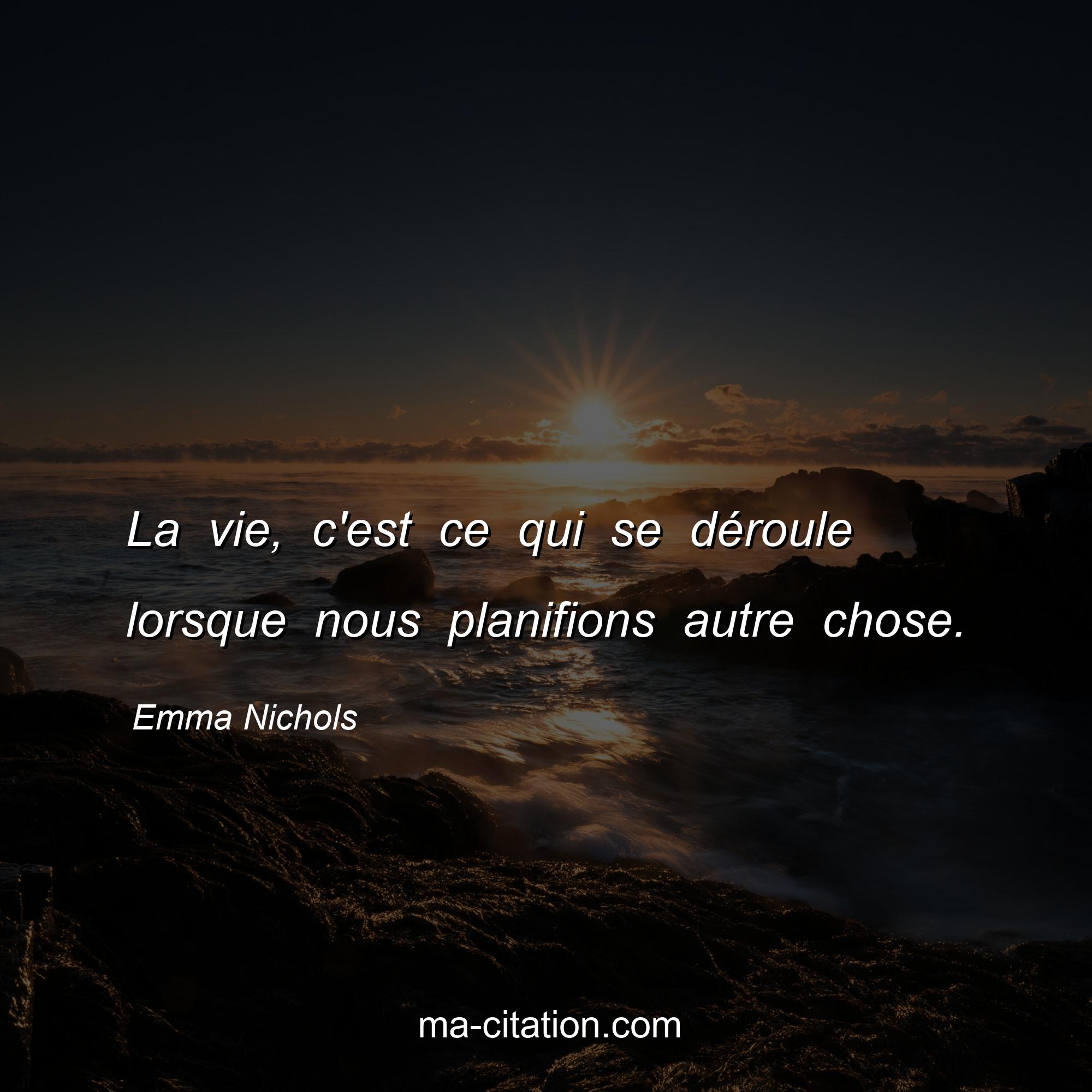 Citation sur la vie d'Emma Nichols :La vie, c'est ce qui se déroule lorsque nous planifions autre chose.