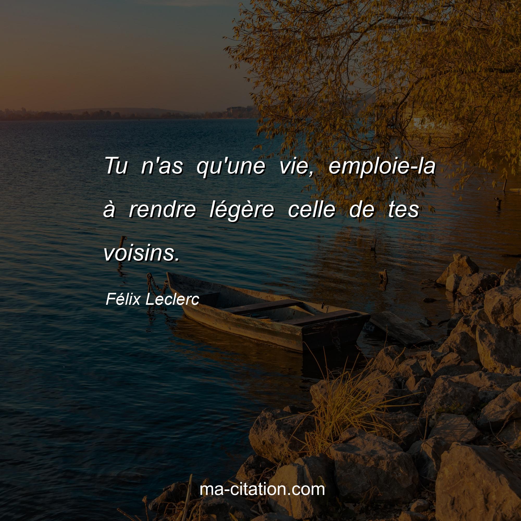 Félix Leclerc est l'auteur de la citation sur la vie "Tu n'as qu'une vie, emploie-la à rendre légère celle de tes voisins.".