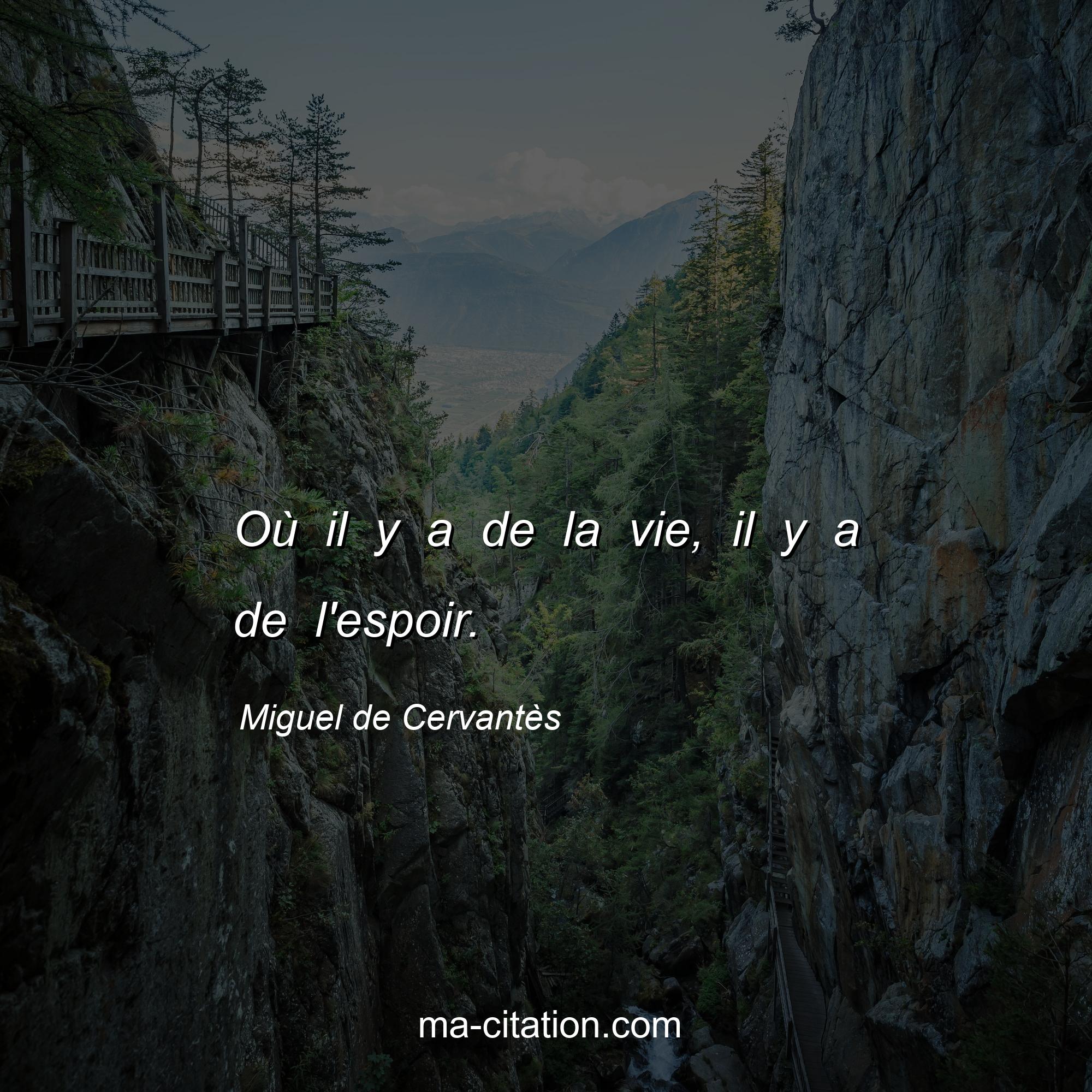 Citation sur la vie de Miguel de Cervantès :Où il y a de la vie, il y a de l'espoir.