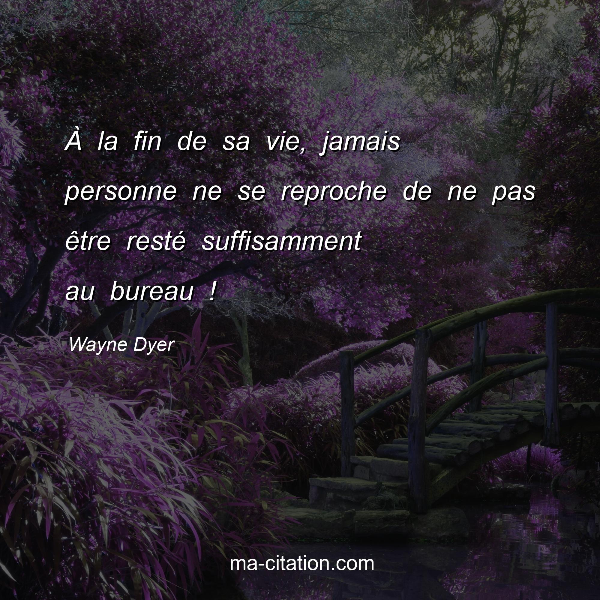 Citation sur la vie de Wayne Dyer :À la fin de sa vie, jamais personne ne se reproche de ne pas être resté suffisamment au bureau !