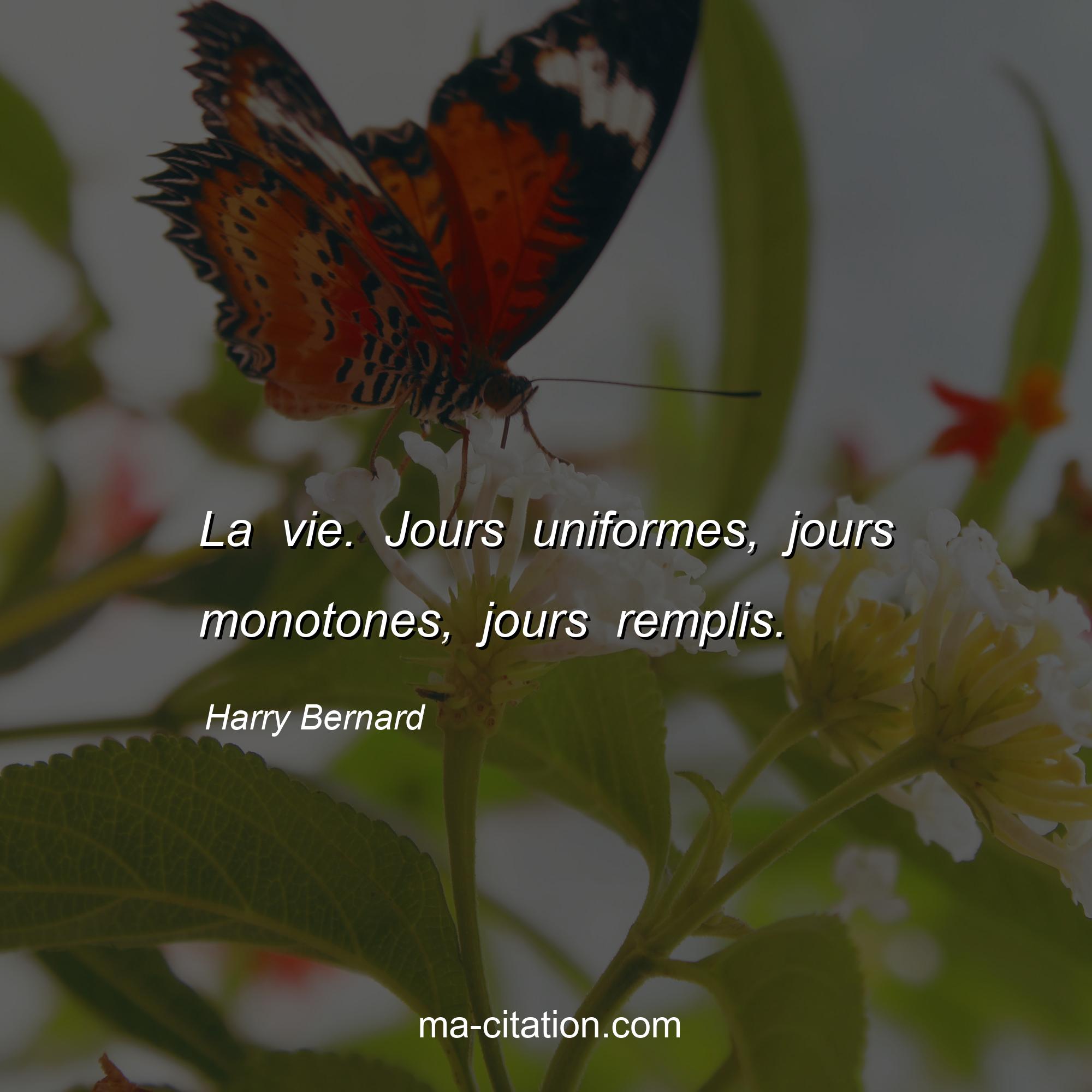 Harry Bernard est l'auteur de la citation sur la vie "La vie. Jours uniformes, jours monotones, jours remplis.".