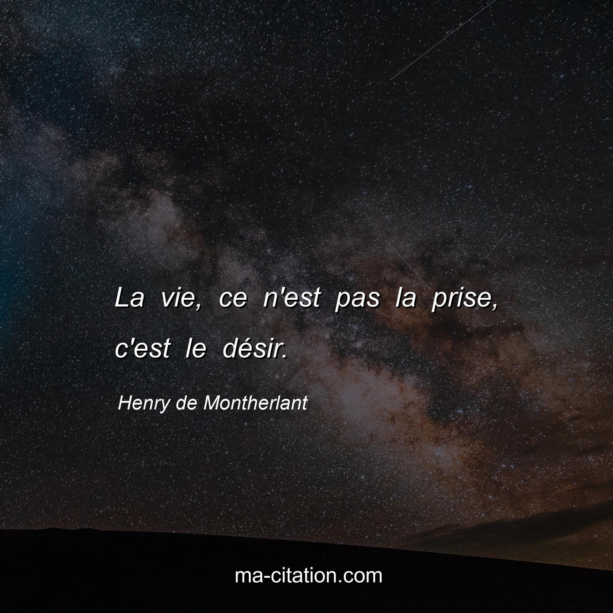 Citation sur la vie de Henry de Montherlant :La vie, ce n'est pas la prise, c'est le désir.
