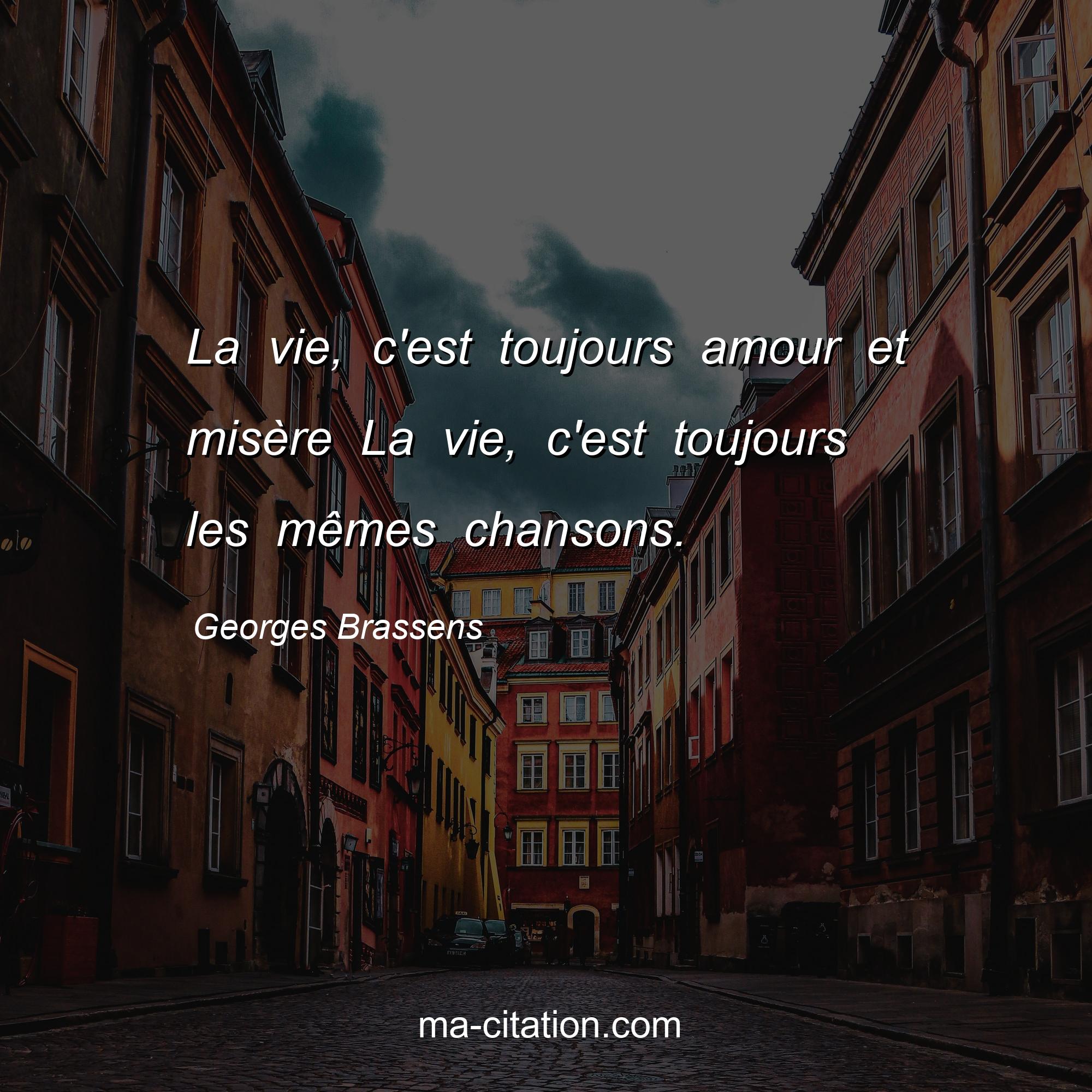 Citation sur la vie de Georges Brassens :La vie, c'est toujours amour et misère La vie, c'est toujours les mêmes chansons.