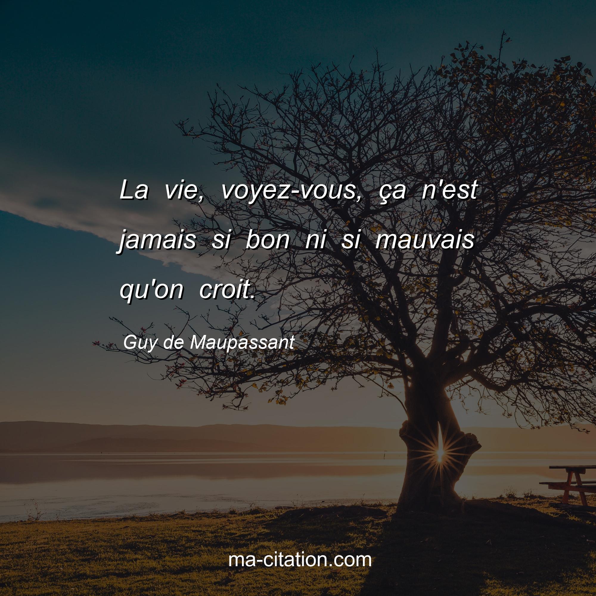 Guy de Maupassant est l'auteur de la citation sur la vie "La vie, voyez-vous, ça n'est jamais si bon ni si mauvais qu'on croit.".