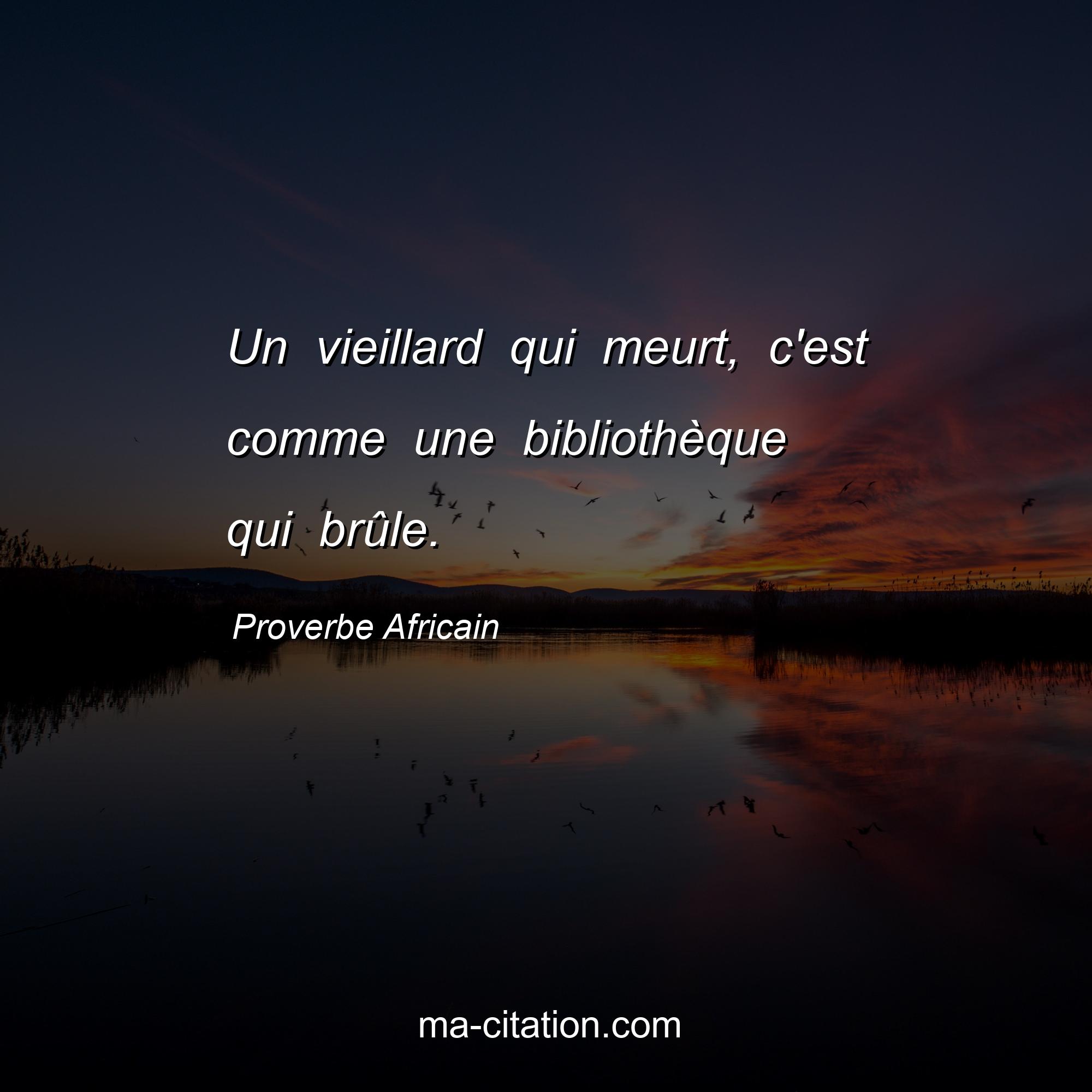 Proverbe Africain sur la vie :Un vieillard qui meurt, c'est comme une bibliothèque qui brûle.