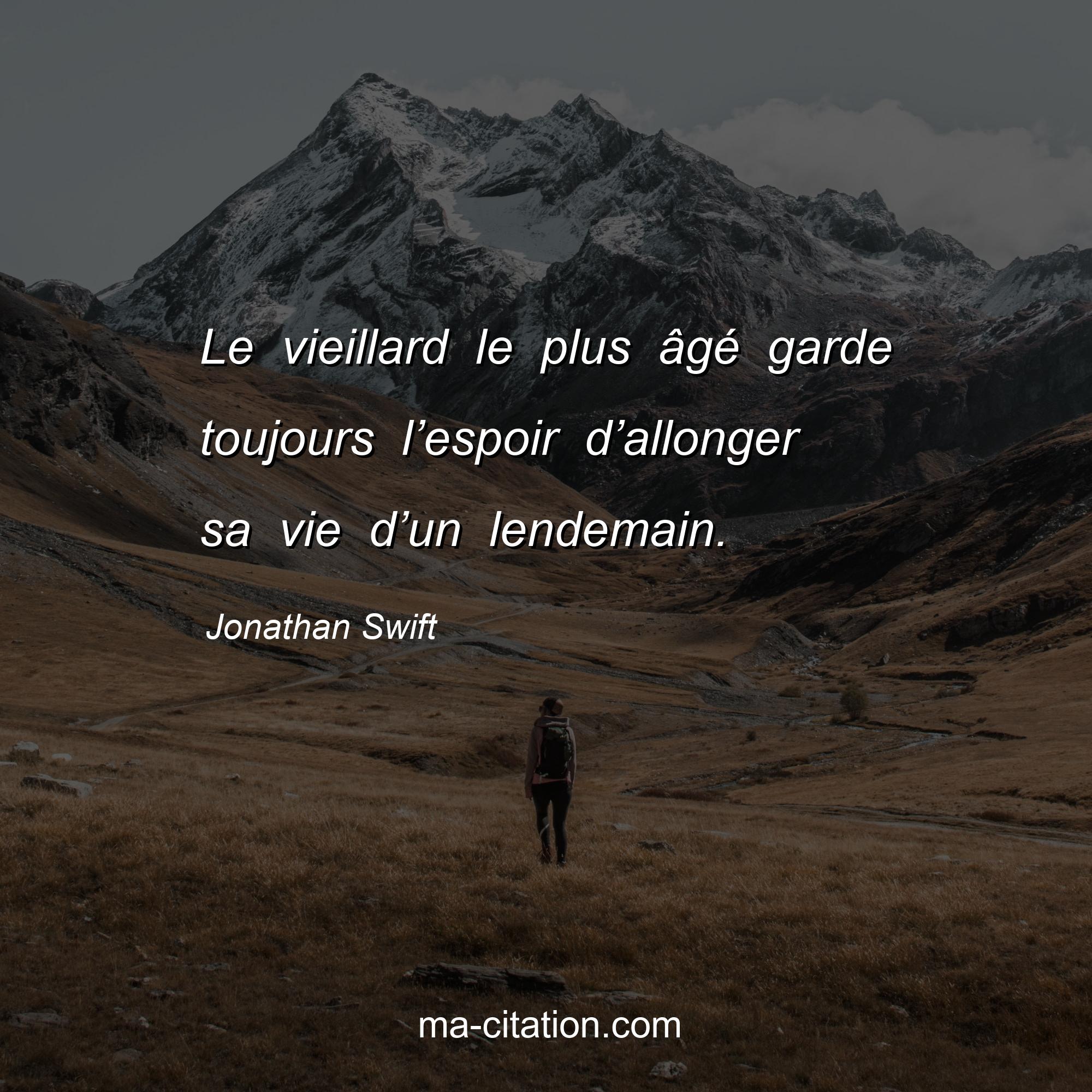 Citation sur la vie de Jonathan Swift :Le vieillard le plus âgé garde toujours l’espoir d’allonger sa vie d’un lendemain.