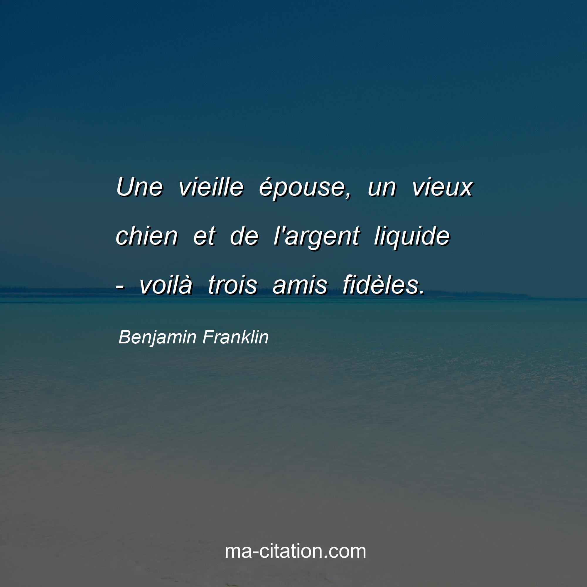 Citation sur la vie de Benjamin Franklin :Une vieille épouse, un vieux chien et de l'argent liquide - voilà trois amis fidèles.