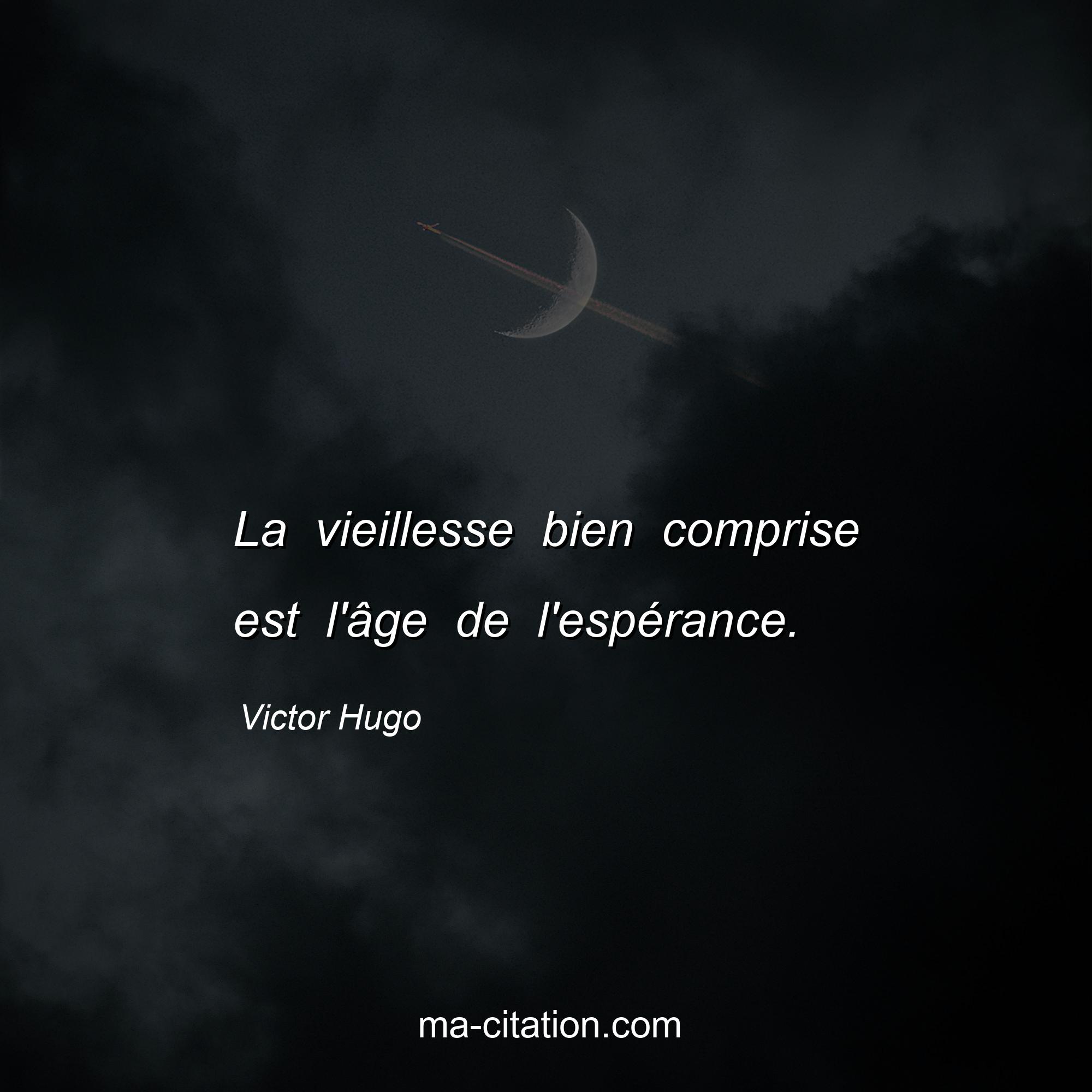 Citation sur la vie de Victor Hugo :La vieillesse bien comprise est l'âge de l'espérance.