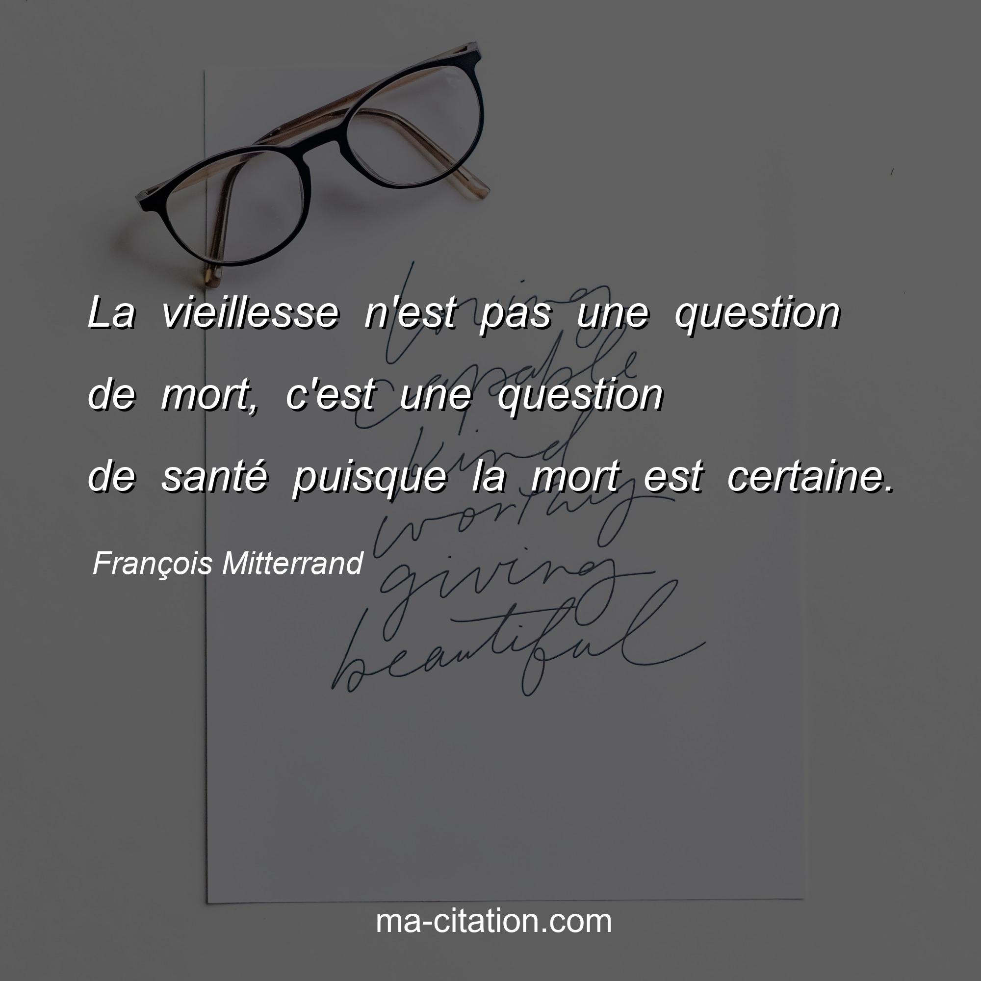 Citation sur la vie de François Mitterrand :La vieillesse n'est pas une question de mort, c'est une question de santé puisque la mort est certaine.