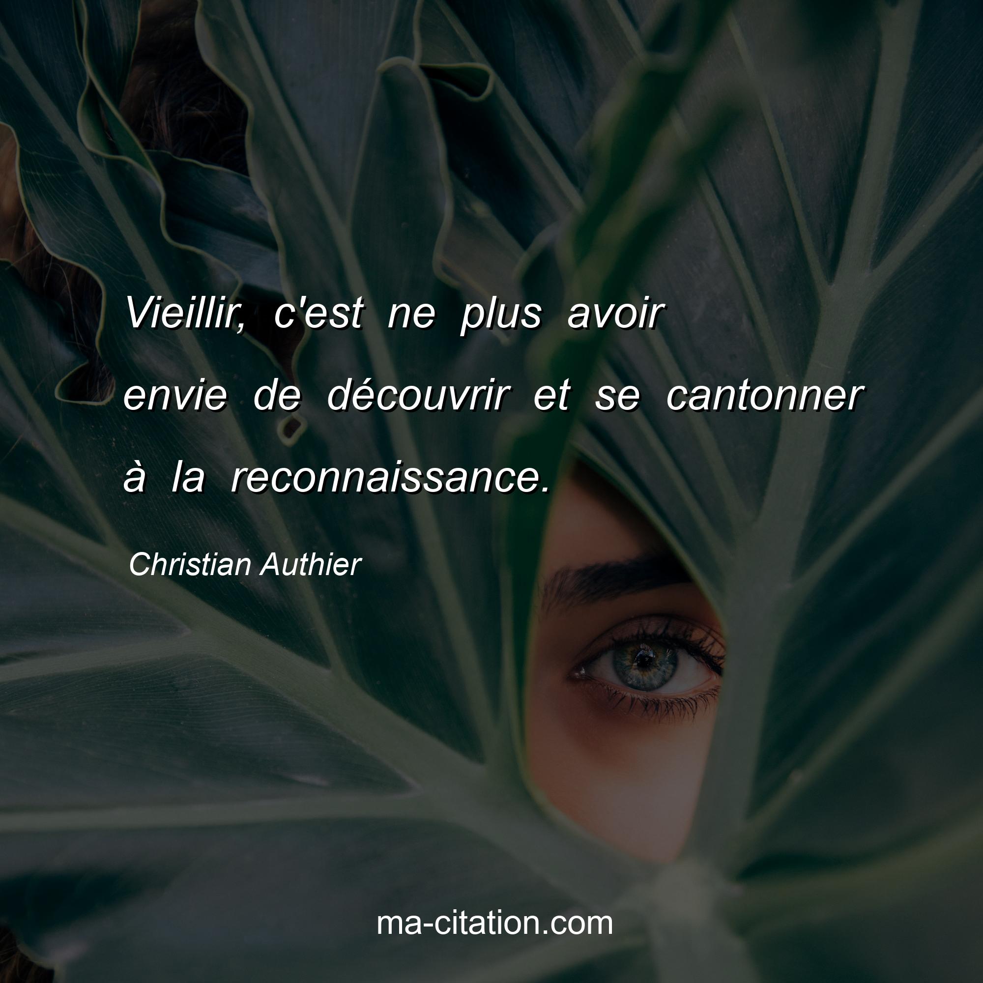 Christian Authier est l'auteur de la citation sur la vie "Vieillir, c'est ne plus avoir envie de découvrir et se cantonner à la reconnaissance.".