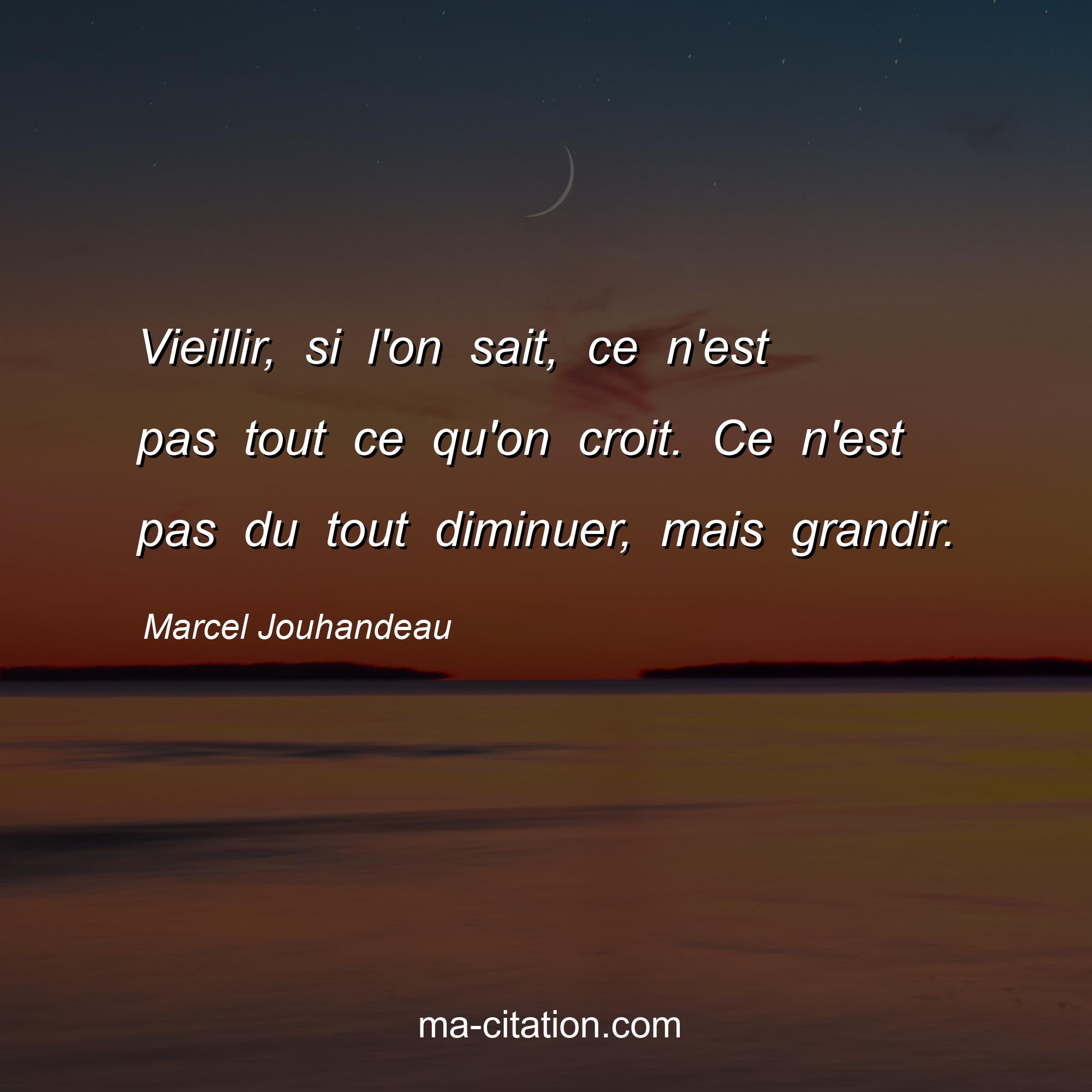 Citation sur la vie de Marcel Jouhandeau :Vieillir, si l'on sait, ce n'est pas tout ce qu'on croit. Ce n'est pas du tout diminuer, mais grandir.