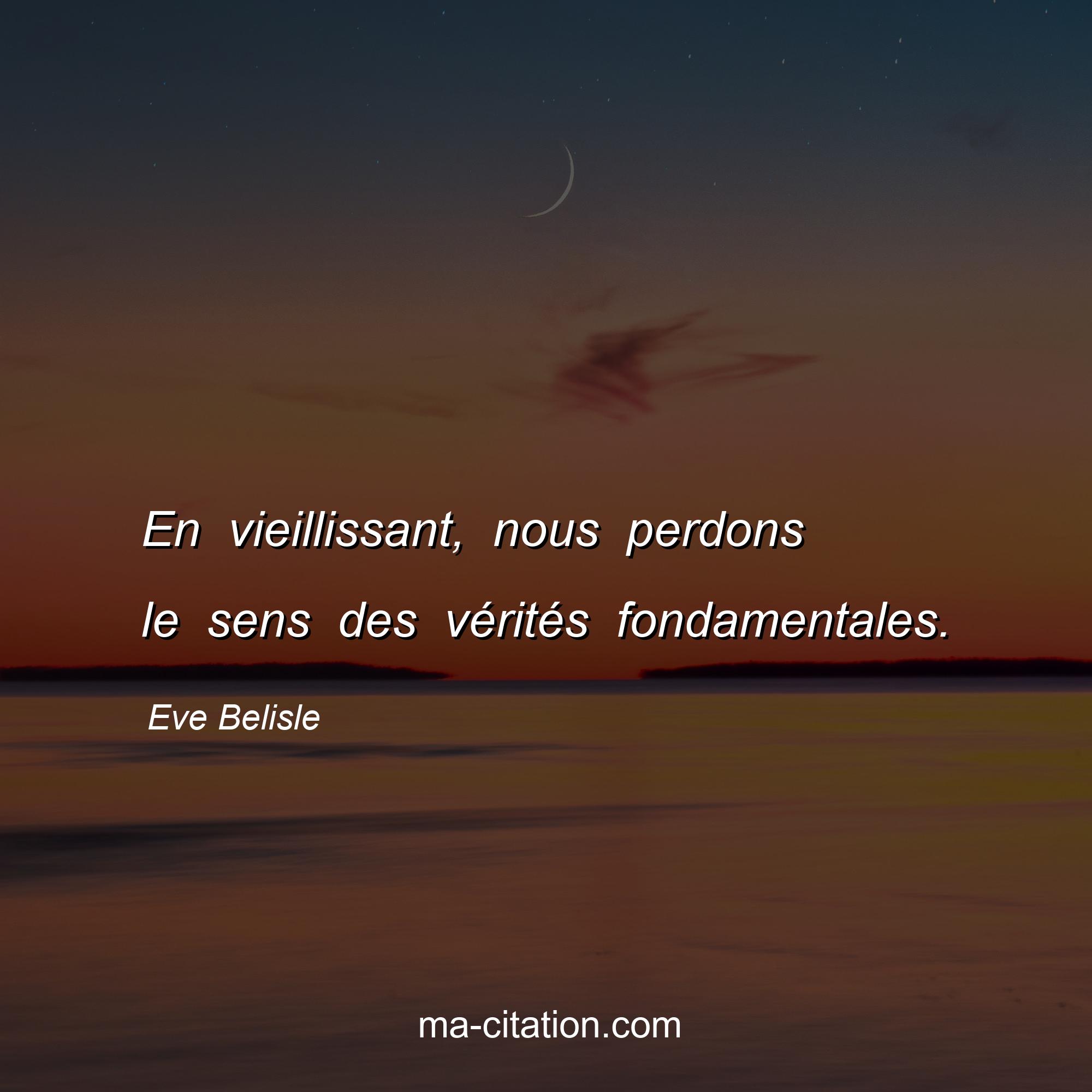 Citation sur la vie d'Eve Belisle :En vieillissant, nous perdons le sens des vérités fondamentales.