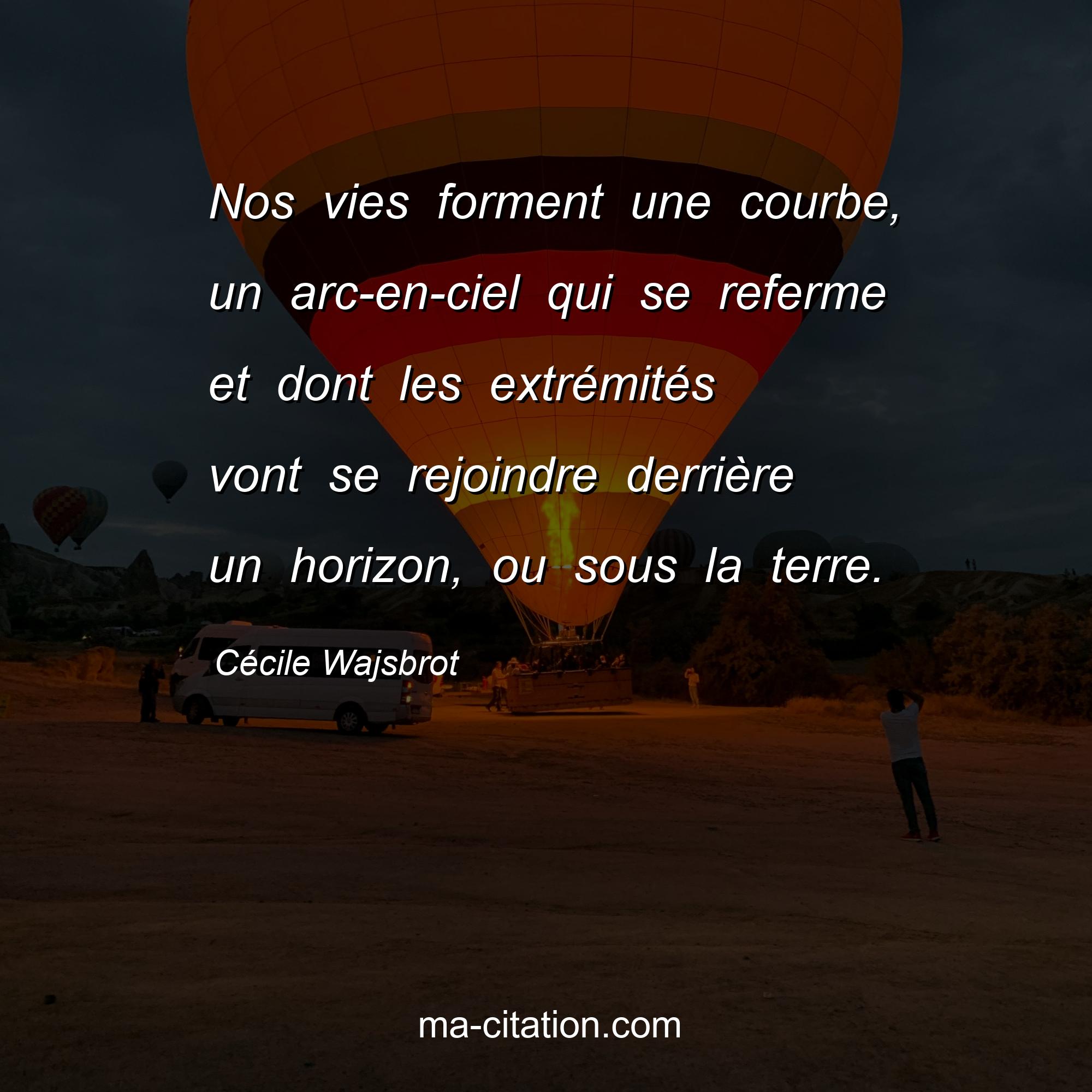 Citation sur la vie de Cécile Wajsbrot :Nos vies forment une courbe, un arc-en-ciel qui se referme et dont les extrémités vont se rejoindre derrière un horizon, ou sous la terre.