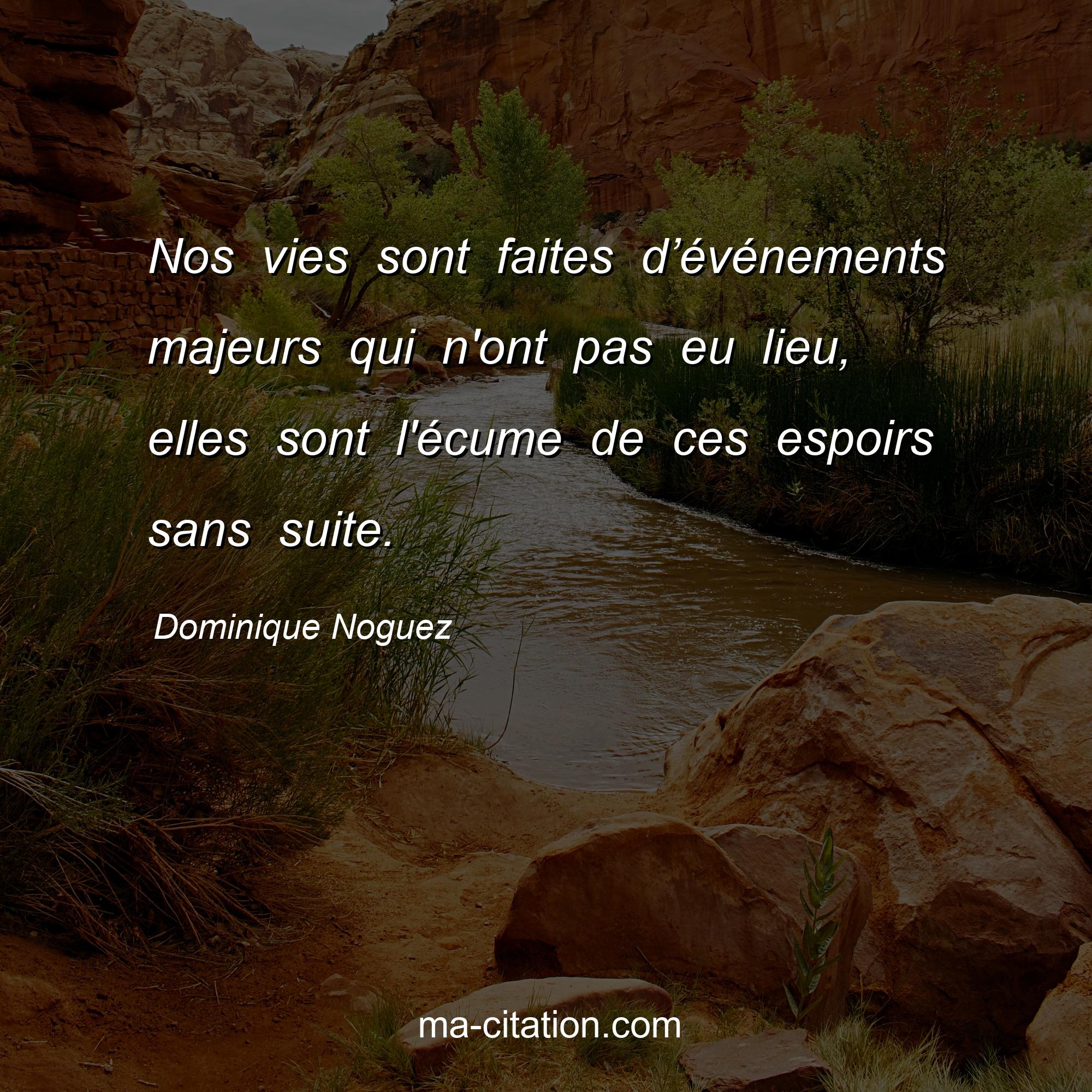 Citation sur la vie de Dominique Noguez :Nos vies sont faites d’événements majeurs qui n'ont pas eu lieu, elles sont l'écume de ces espoirs sans suite.