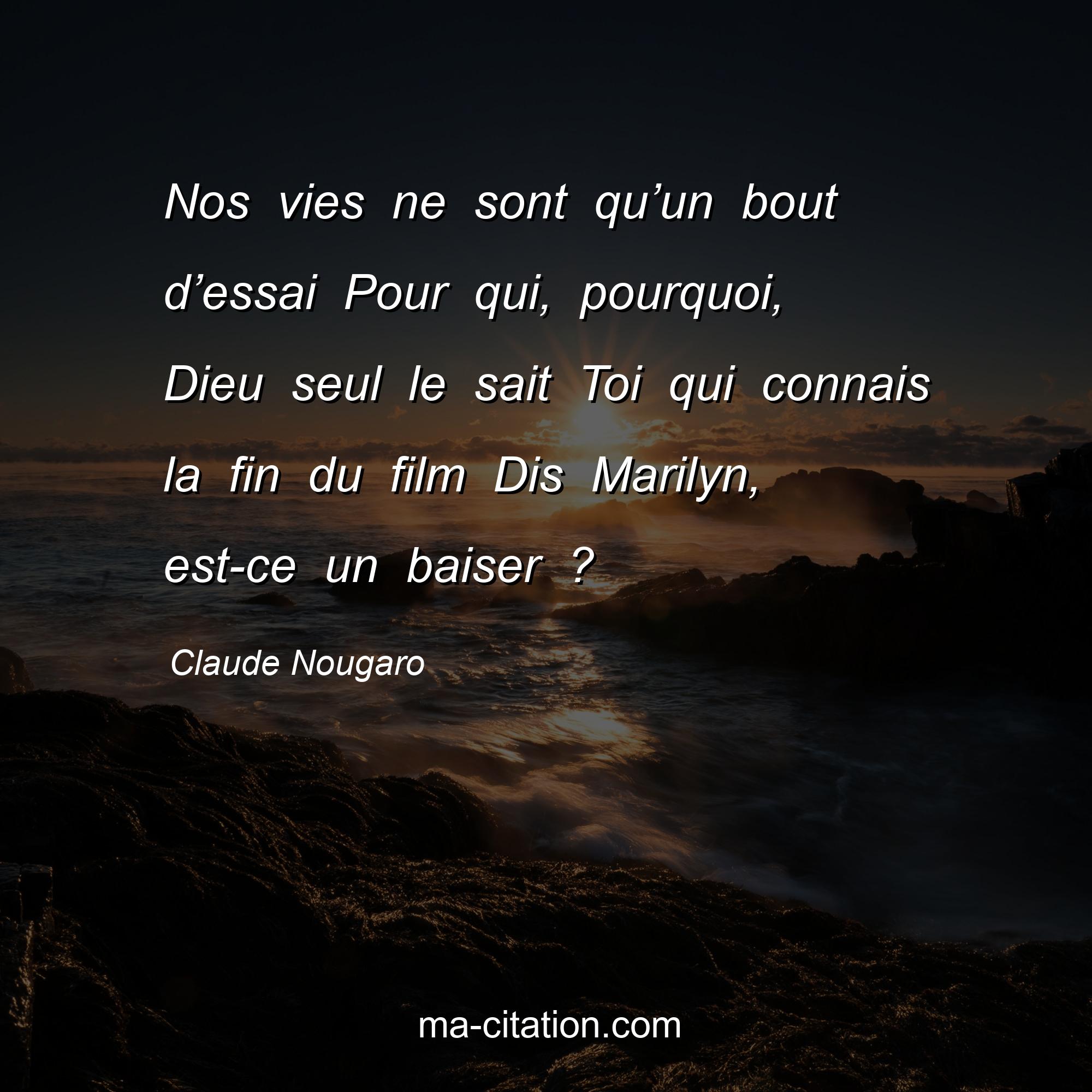 Citation sur la vie de Claude Nougaro :Nos vies ne sont qu’un bout d’essai Pour qui, pourquoi, Dieu seul le sait Toi qui connais la fin du film Dis Marilyn, est-ce un baiser ?