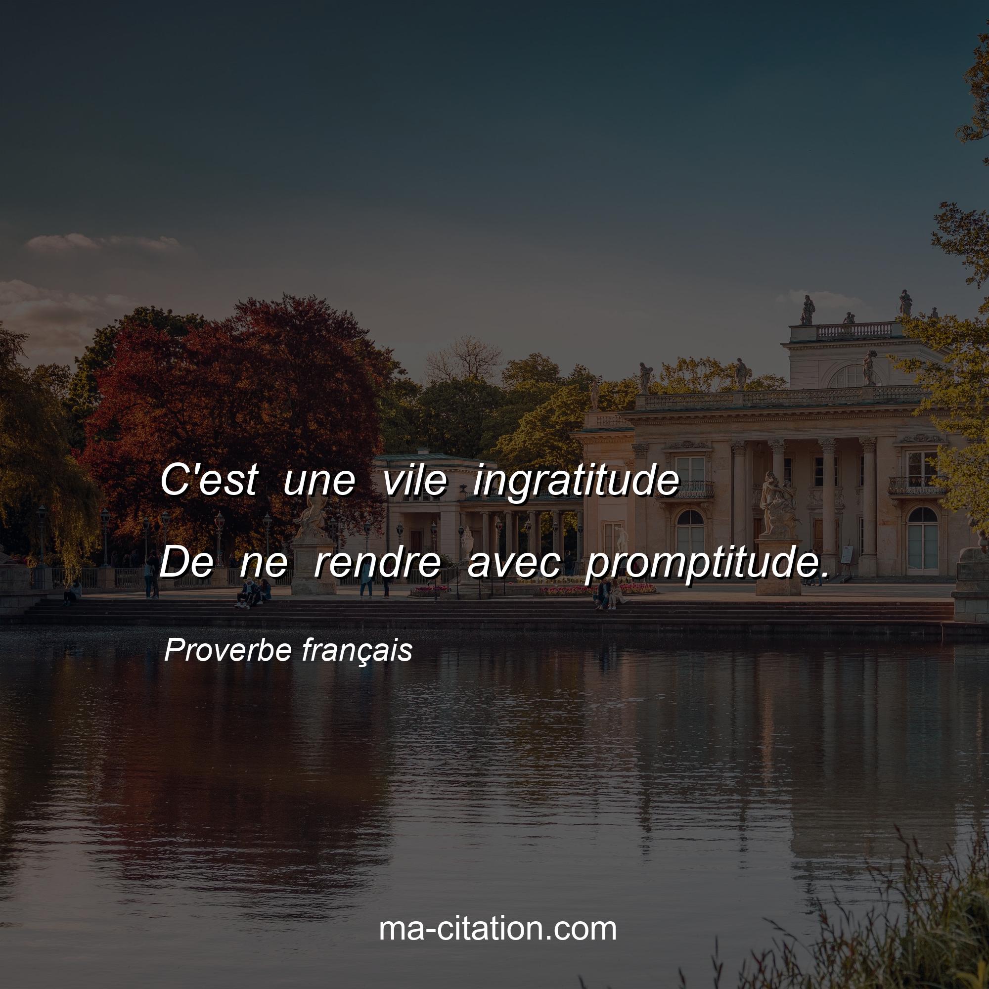 Proverbe français sur la vie :C'est une vile ingratitude De ne rendre avec promptitude.