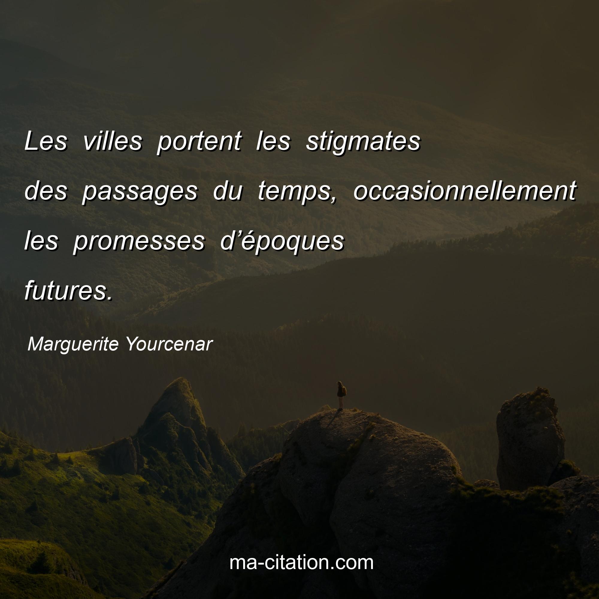 Citation sur la vie de Marguerite Yourcenar :Les villes portent les stigmates des passages du temps, occasionnellement les promesses d’époques futures.