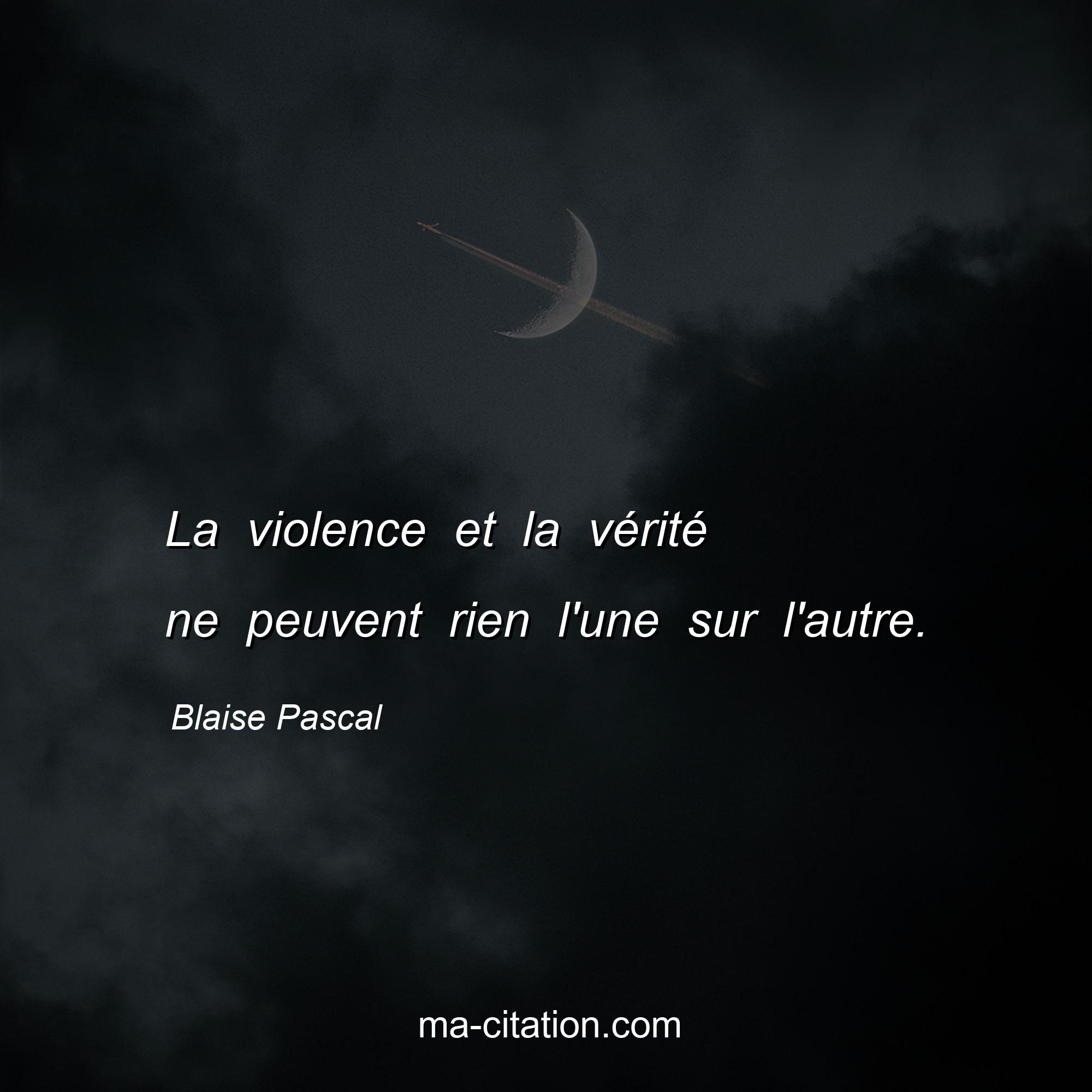 Citation sur la vie de Blaise Pascal :La violence et la vérité ne peuvent rien l'une sur l'autre.