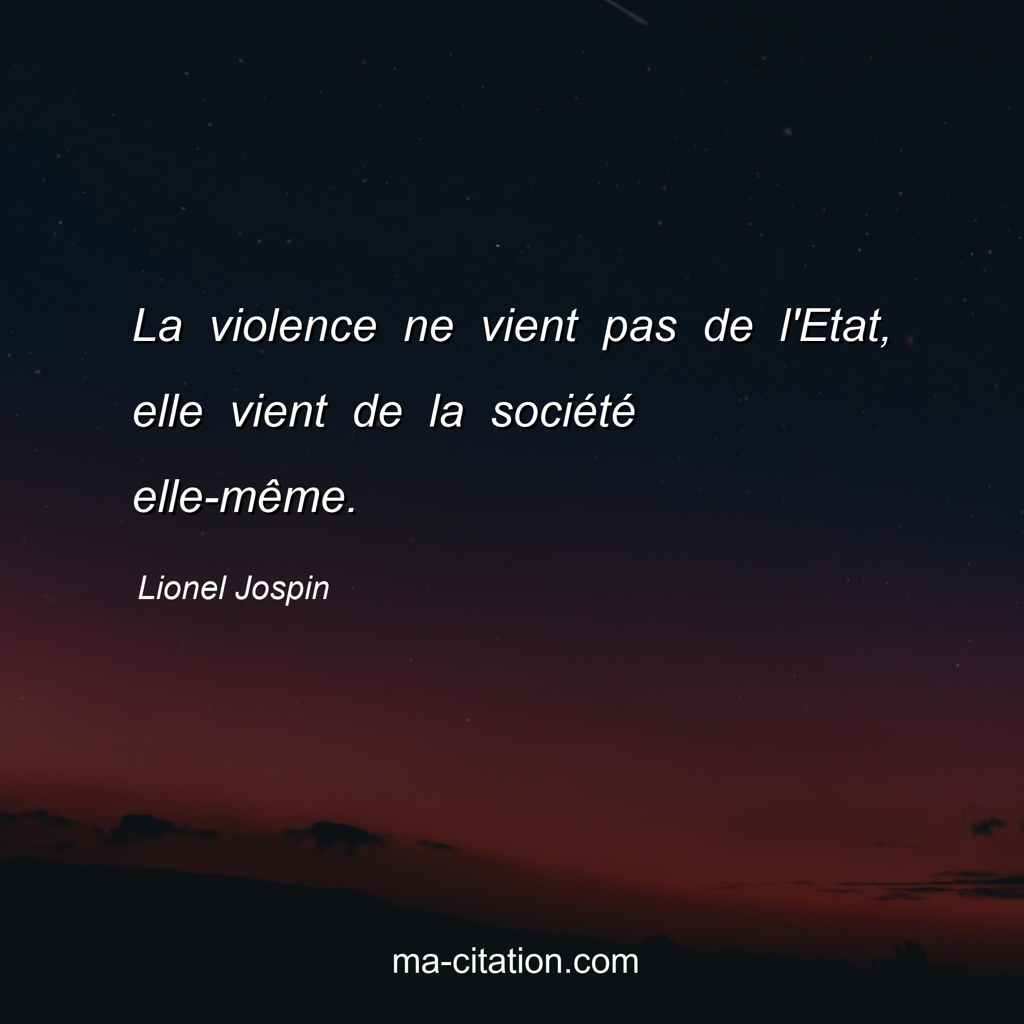 Citation sur la vie de Lionel Jospin :La violence ne vient pas de l'Etat, elle vient de la société elle-même.