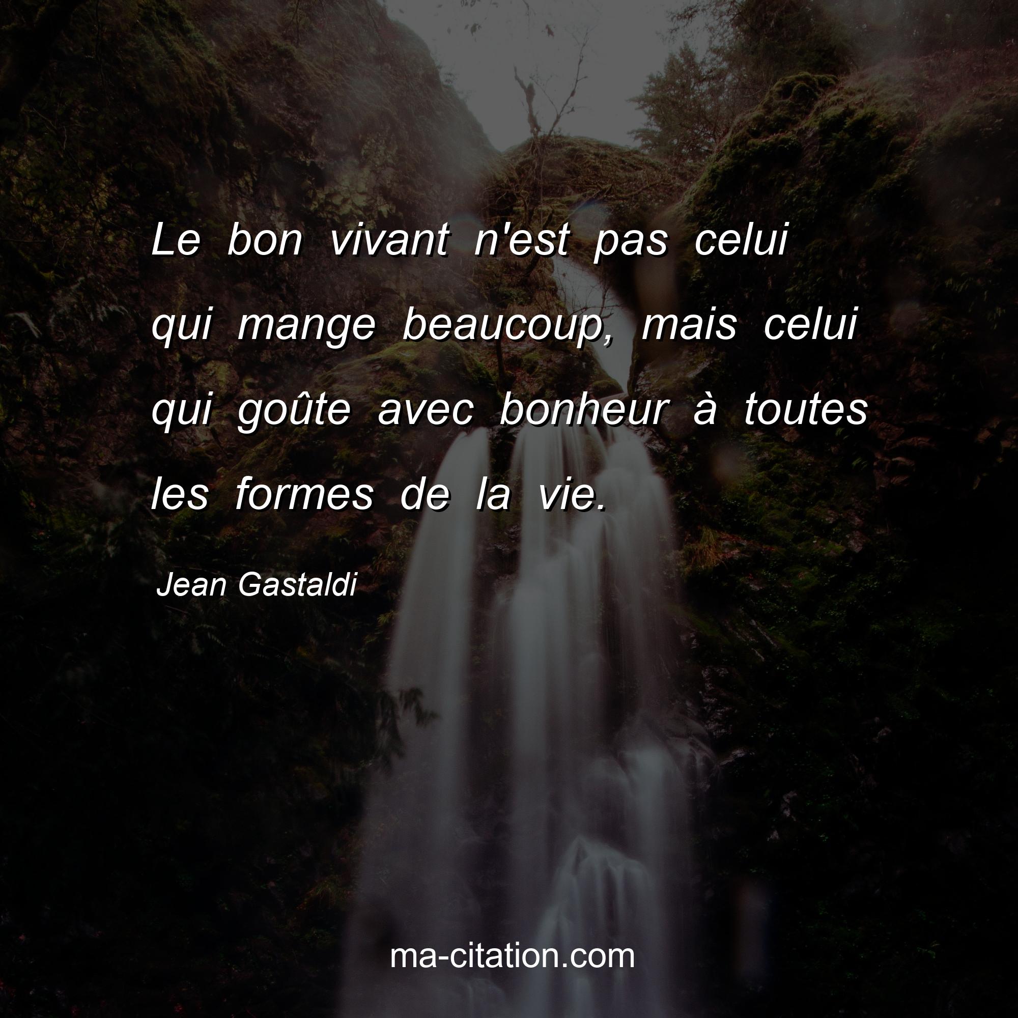 Jean Gastaldi est l'auteur de la citation sur la vie "Le bon vivant n'est pas celui qui mange beaucoup, mais celui qui goûte avec bonheur à toutes les formes de la vie.".