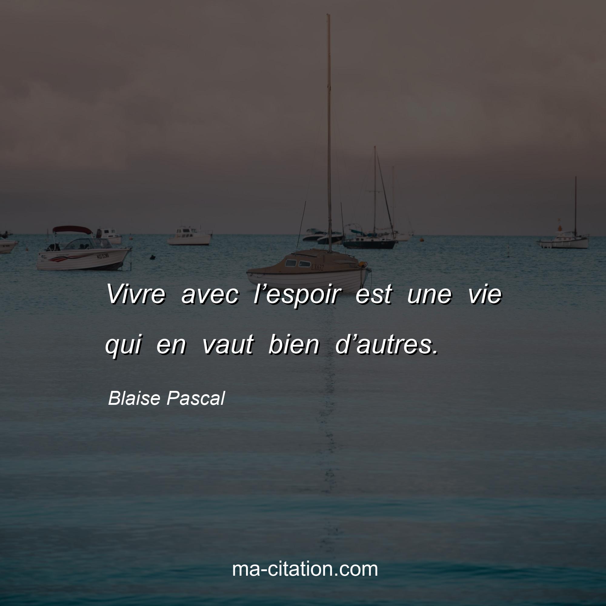 Citation sur la vie de Blaise Pascal :Vivre avec l’espoir est une vie qui en vaut bien d’autres.