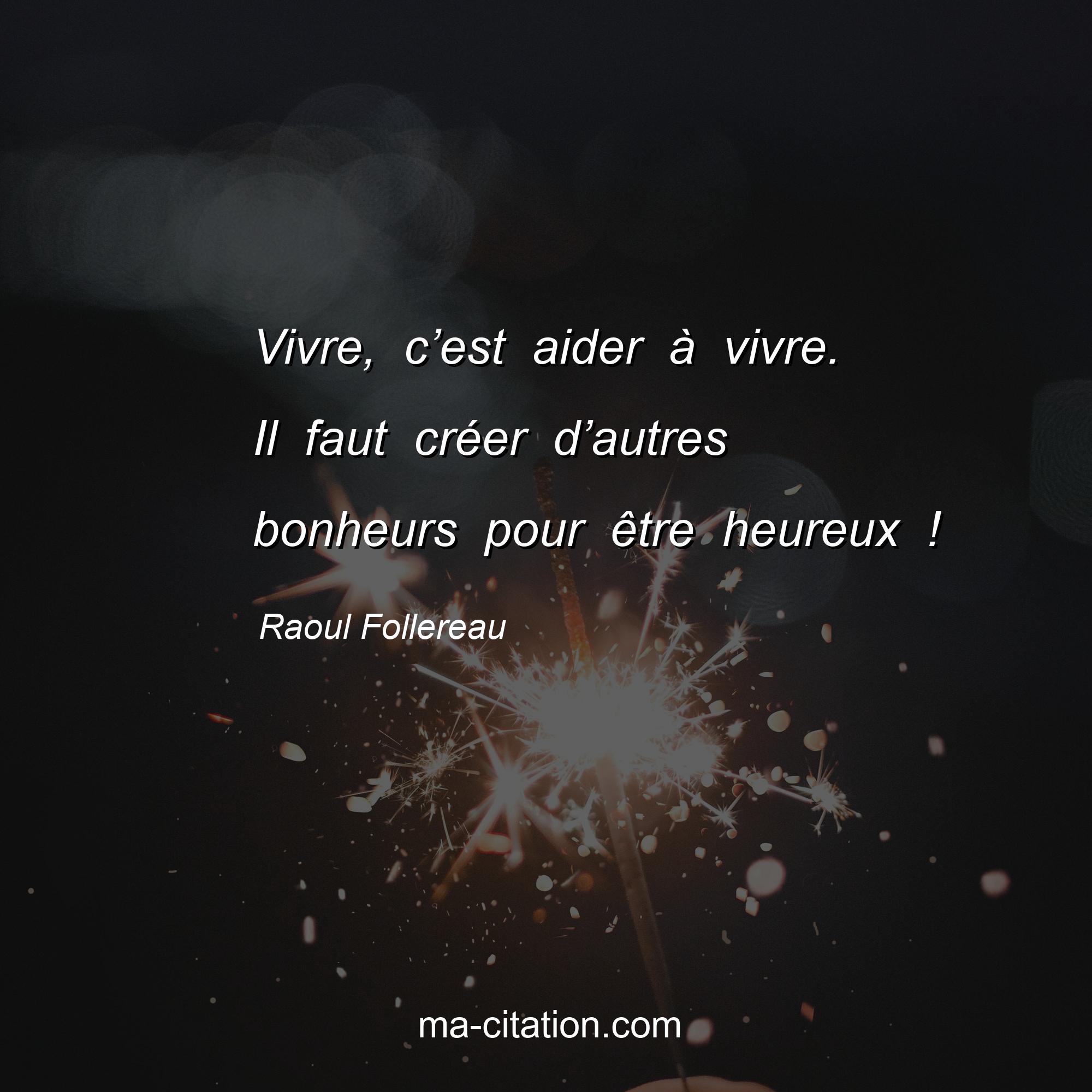 Raoul Follereau est l'auteur de la citation sur la vie "Vivre, c’est aider à vivre. Il faut créer d’autres bonheurs pour être heureux !".