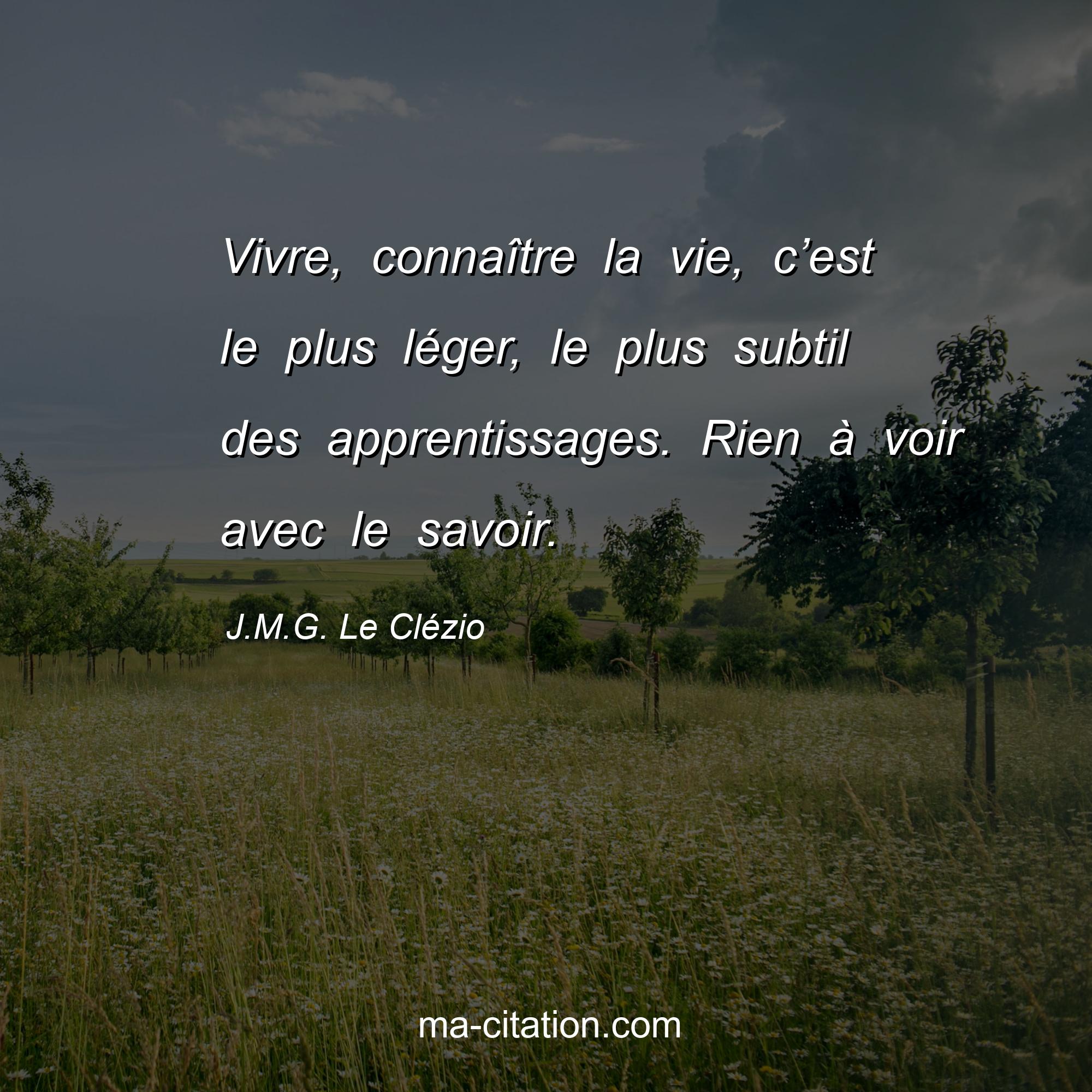 Citation sur la vie de J.M.G. Le Clézio :Vivre, connaître la vie, c’est le plus léger, le plus subtil des apprentissages. Rien à voir avec le savoir.