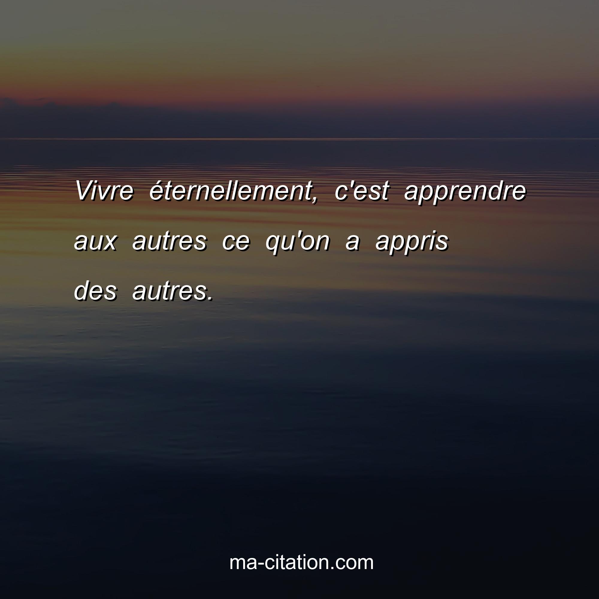Citation sur la vie :Vivre éternellement, c'est apprendre aux autres ce qu'on a appris des autres.