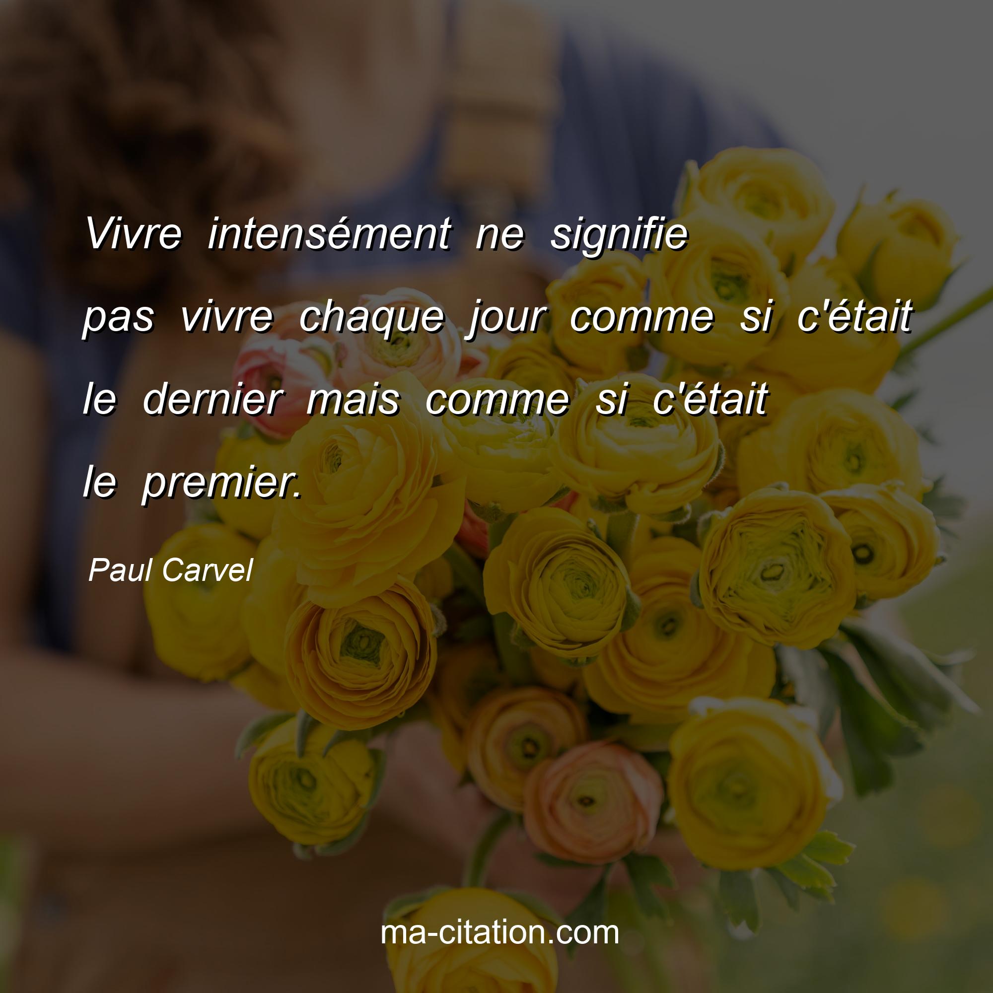 Citation sur la vie de Paul Carvel :Vivre intensément ne signifie pas vivre chaque jour comme si c'était le dernier mais comme si c'était le premier.