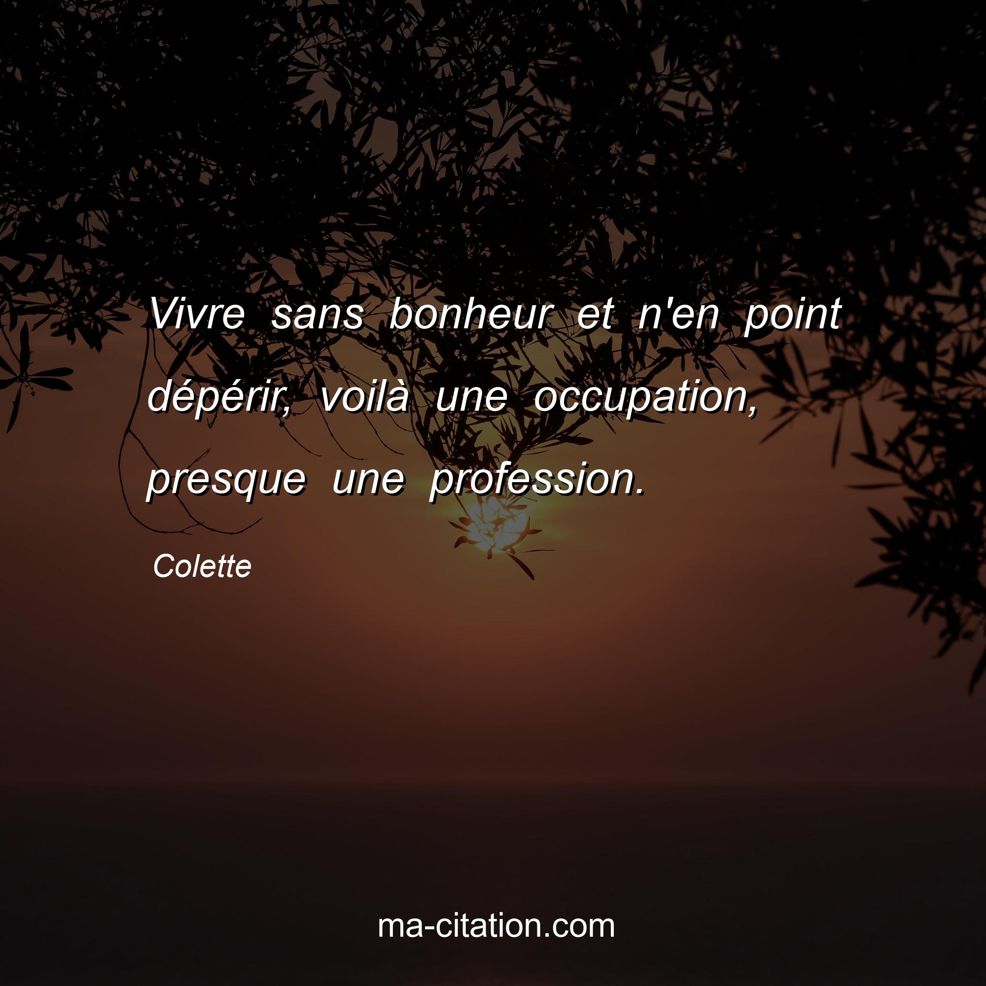 Colette est l'auteur de la citation sur la vie "Vivre sans bonheur et n'en point dépérir, voilà une occupation, presque une profession.".