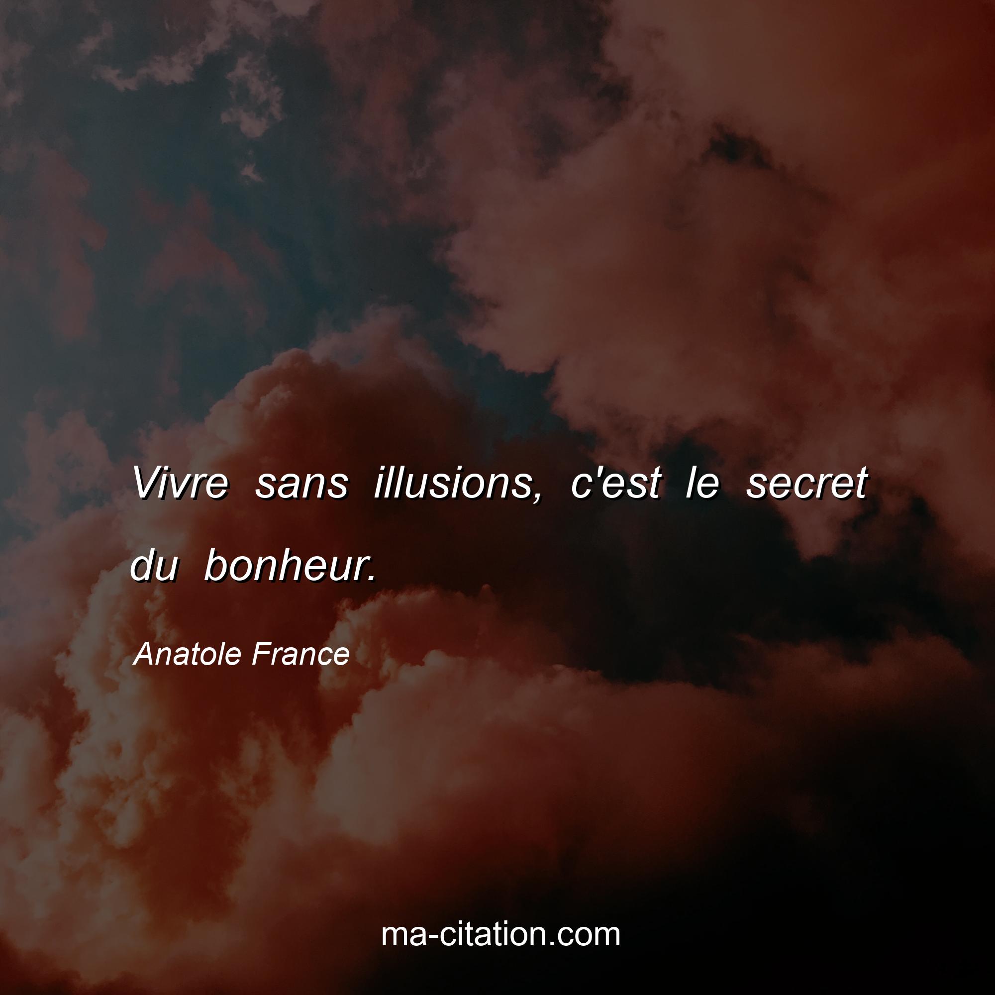 Citation sur la vie d'Anatole France :Vivre sans illusions, c'est le secret du bonheur.