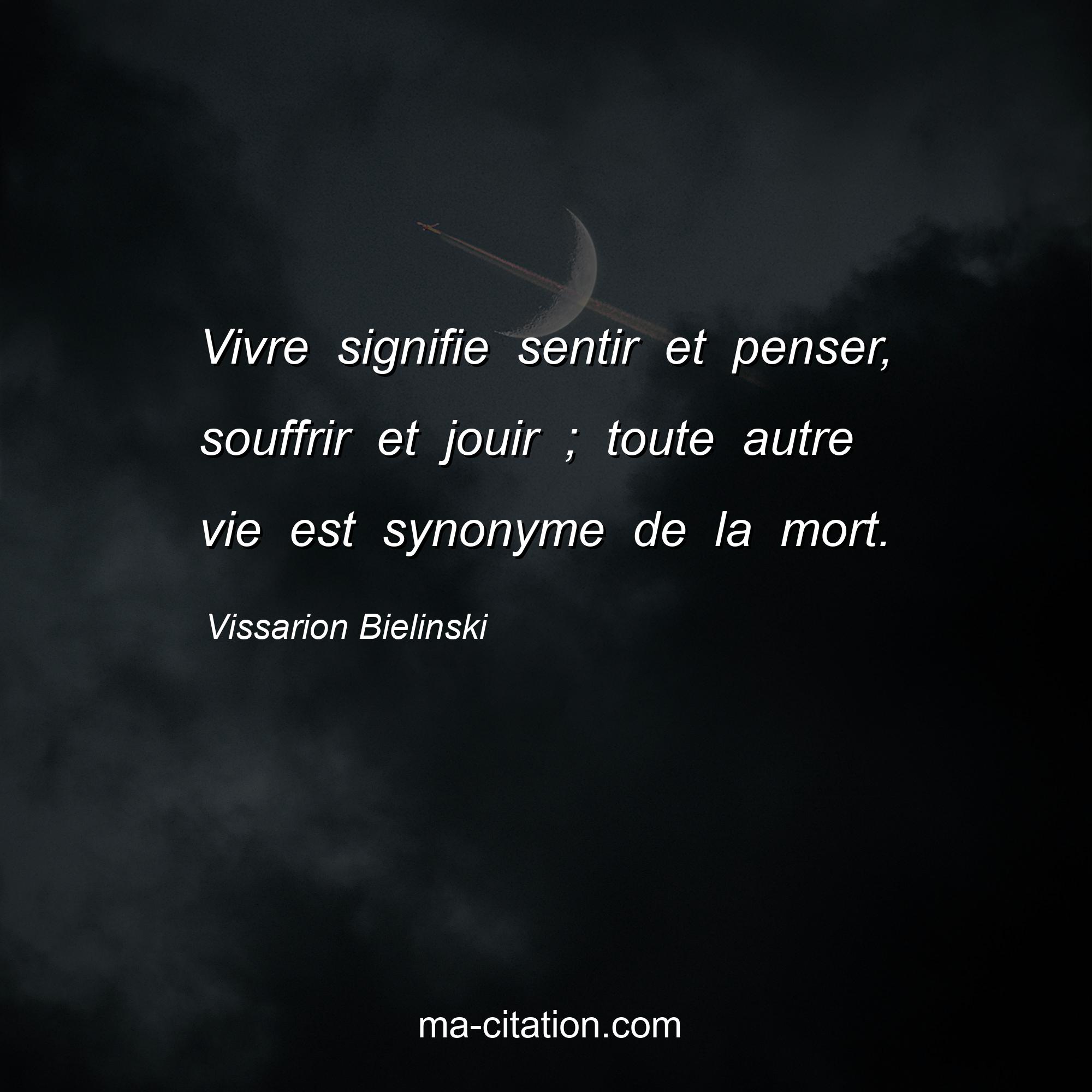 Citation sur la vie de Vissarion Bielinski :Vivre signifie sentir et penser, souffrir et jouir ; toute autre vie est synonyme de la mort.