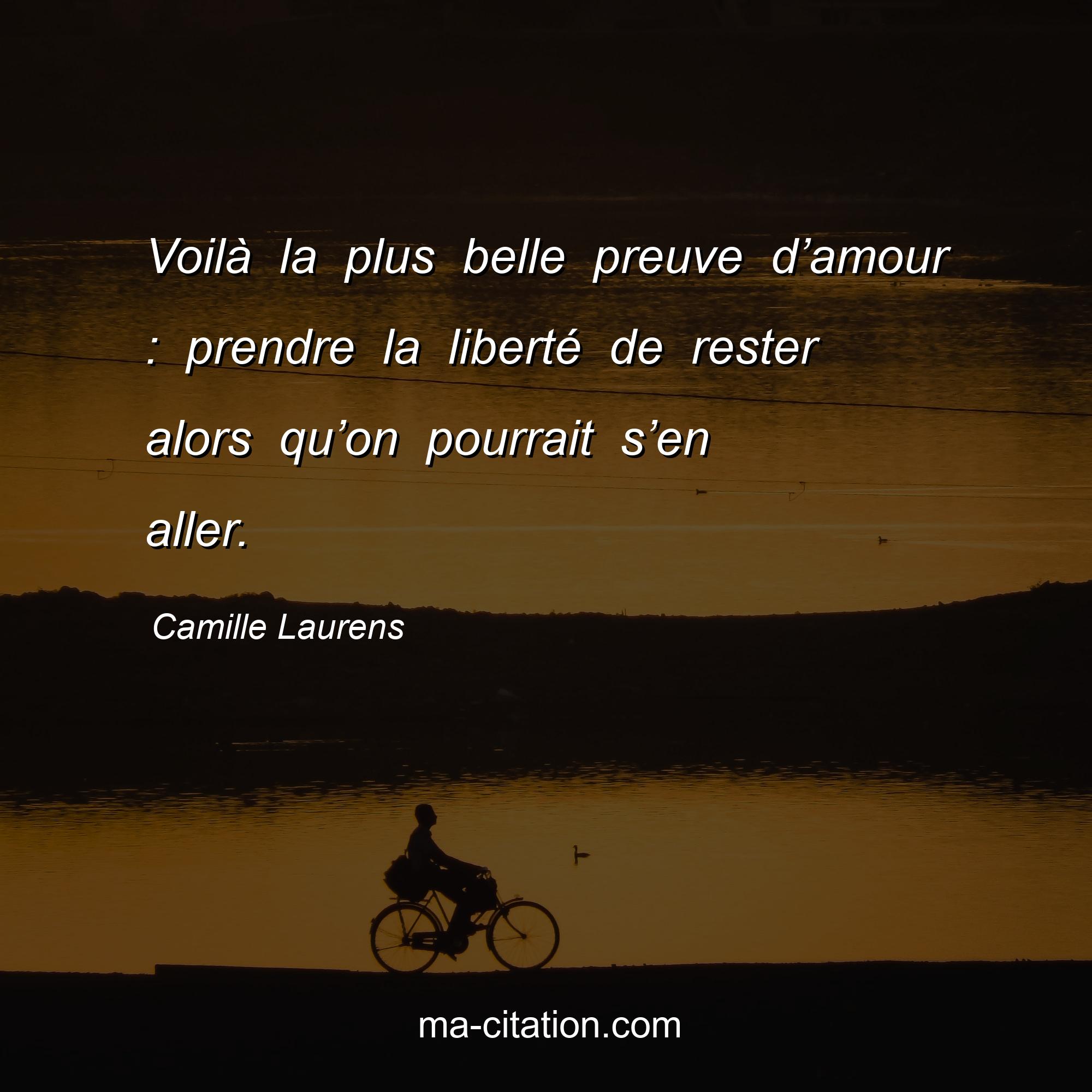 Camille Laurens est l'auteur de la citation sur la vie "Voilà la plus belle preuve d’amour : prendre la liberté de rester alors qu’on pourrait s’en aller.".