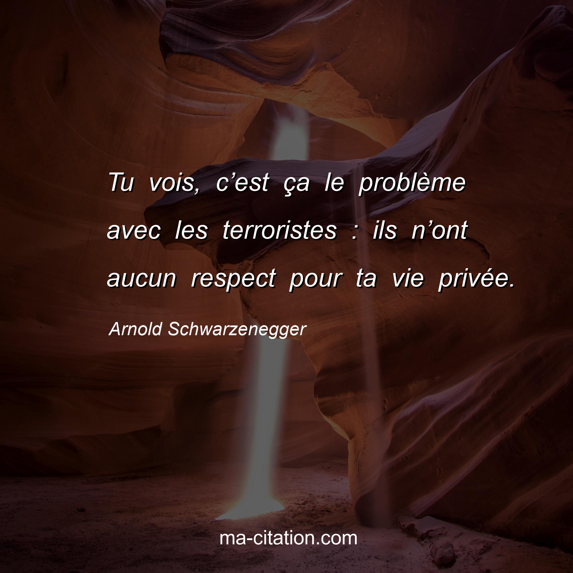Arnold Schwarzenegger est l'auteur de la citation sur la vie "Tu vois, c’est ça le problème avec les terroristes : ils n’ont aucun respect pour ta vie privée.".