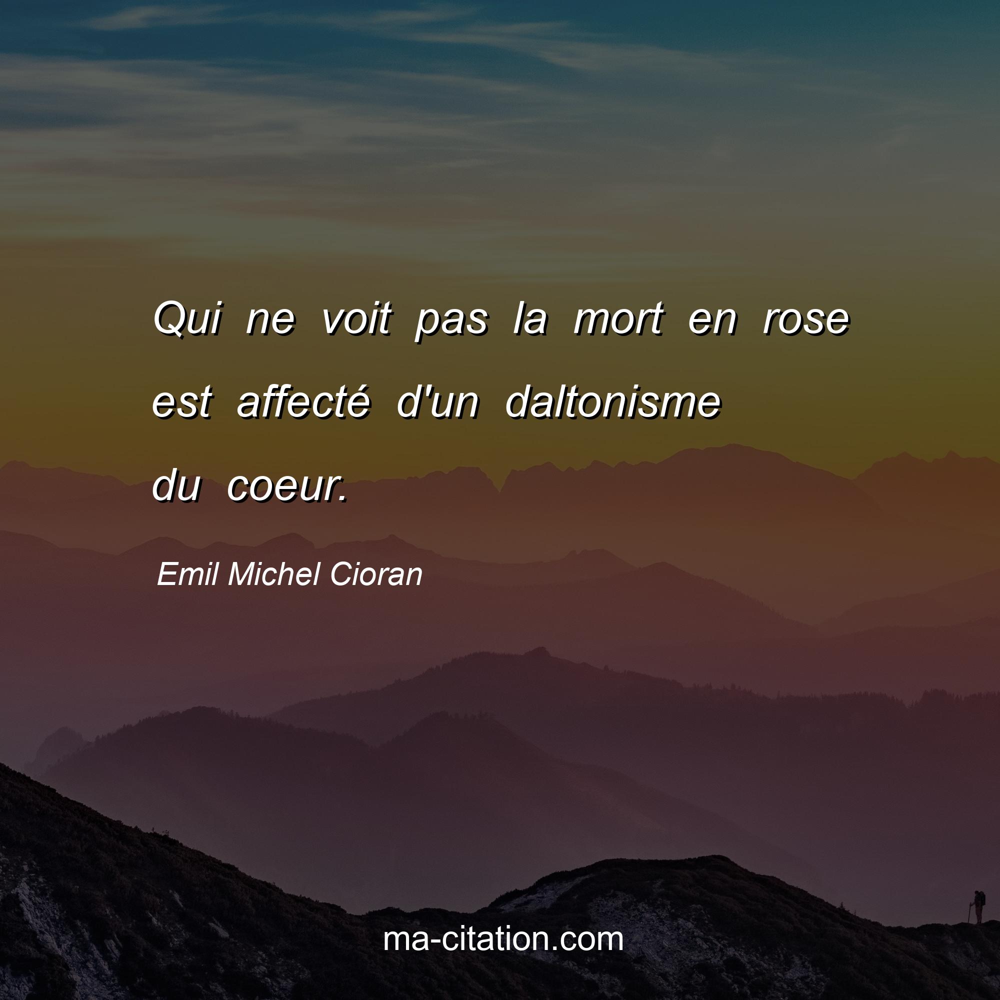 Emil Michel Cioran est l'auteur de la citation sur la vie "Qui ne voit pas la mort en rose est affecté d'un daltonisme du coeur.".