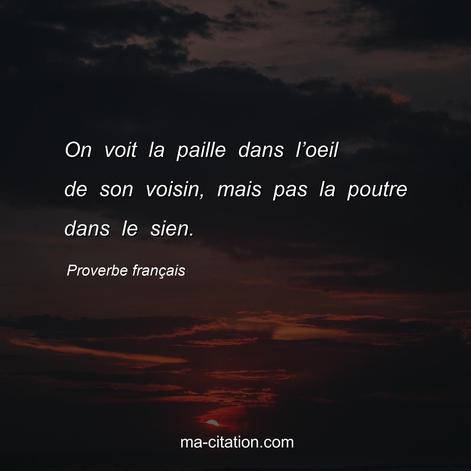Proverbe français sur la vie :On voit la paille dans l’oeil de son voisin, mais pas la poutre dans le sien.