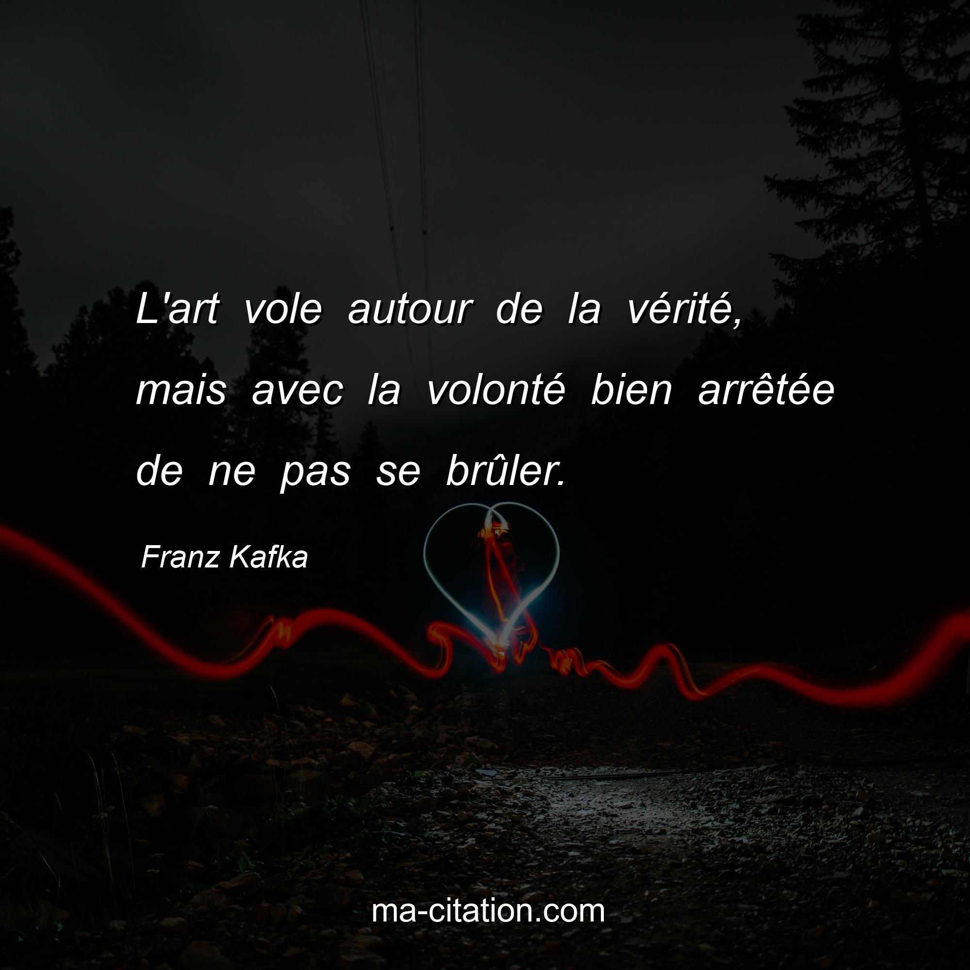 Citation sur la vie de Franz Kafka :L'art vole autour de la vérité, mais avec la volonté bien arrêtée de ne pas se brûler.
