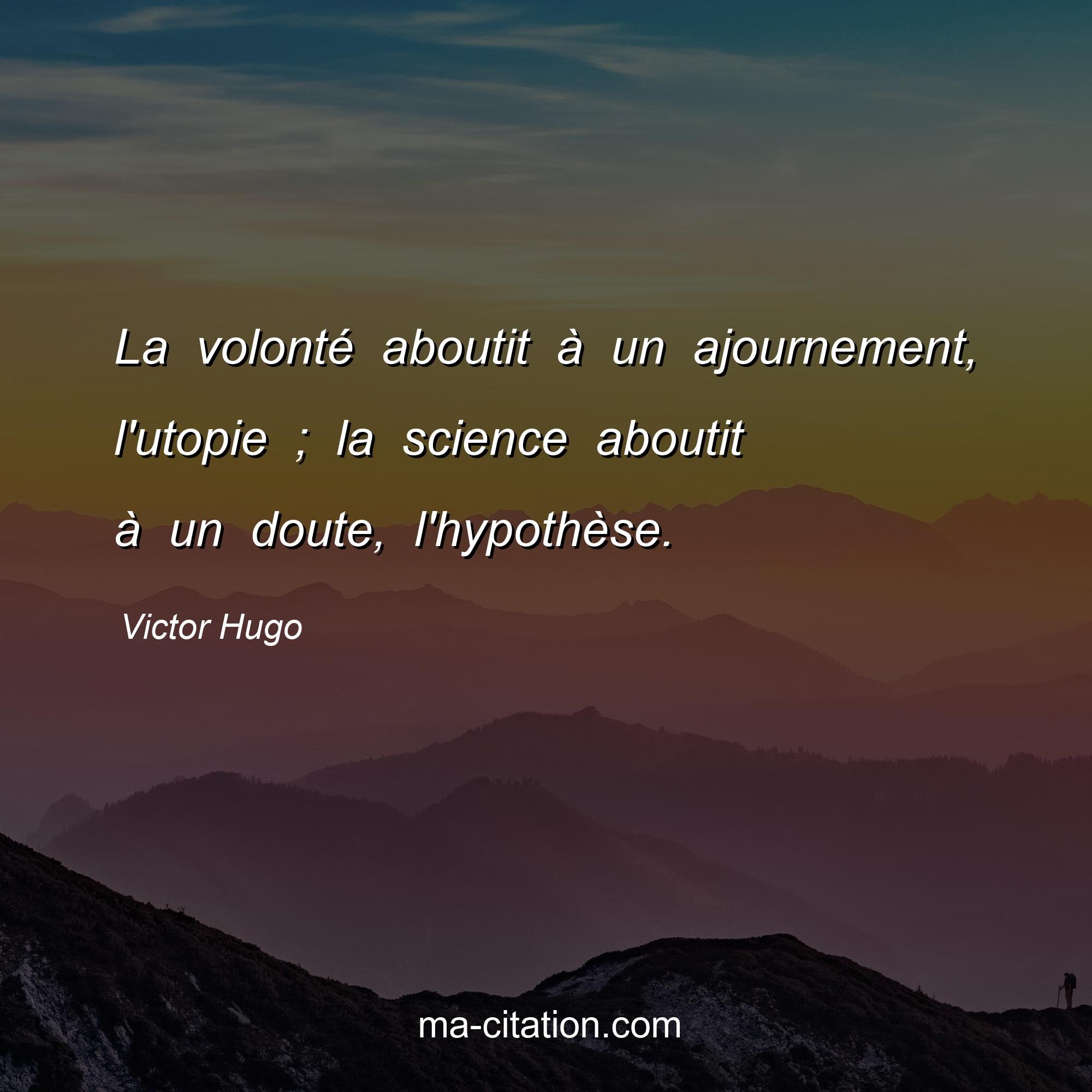 Citation sur la vie de Victor Hugo :La volonté aboutit à un ajournement, l'utopie ; la science aboutit à un doute, l'hypothèse.