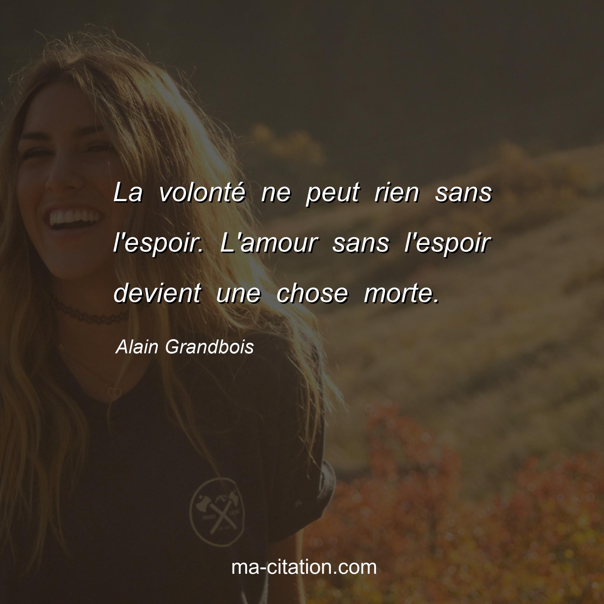 La volonté ne peut rien sans l'espoir. L'amour sans l'espoir devient une chose morte.