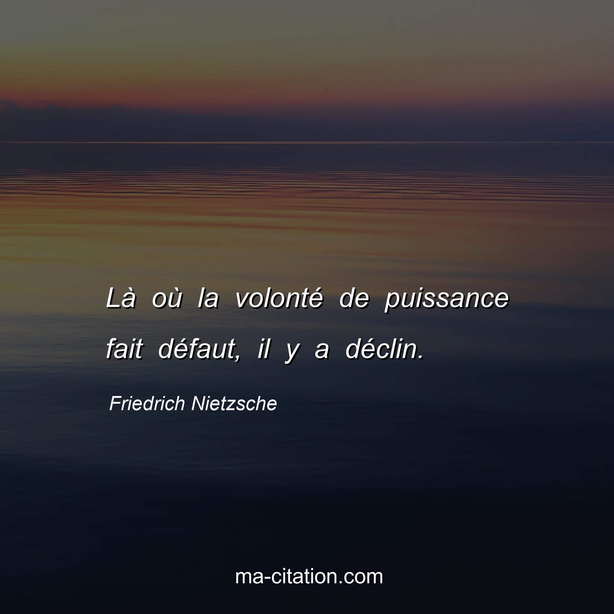 Citation sur la vie de Friedrich Nietzsche :Là où la volonté de puissance fait défaut, il y a déclin.