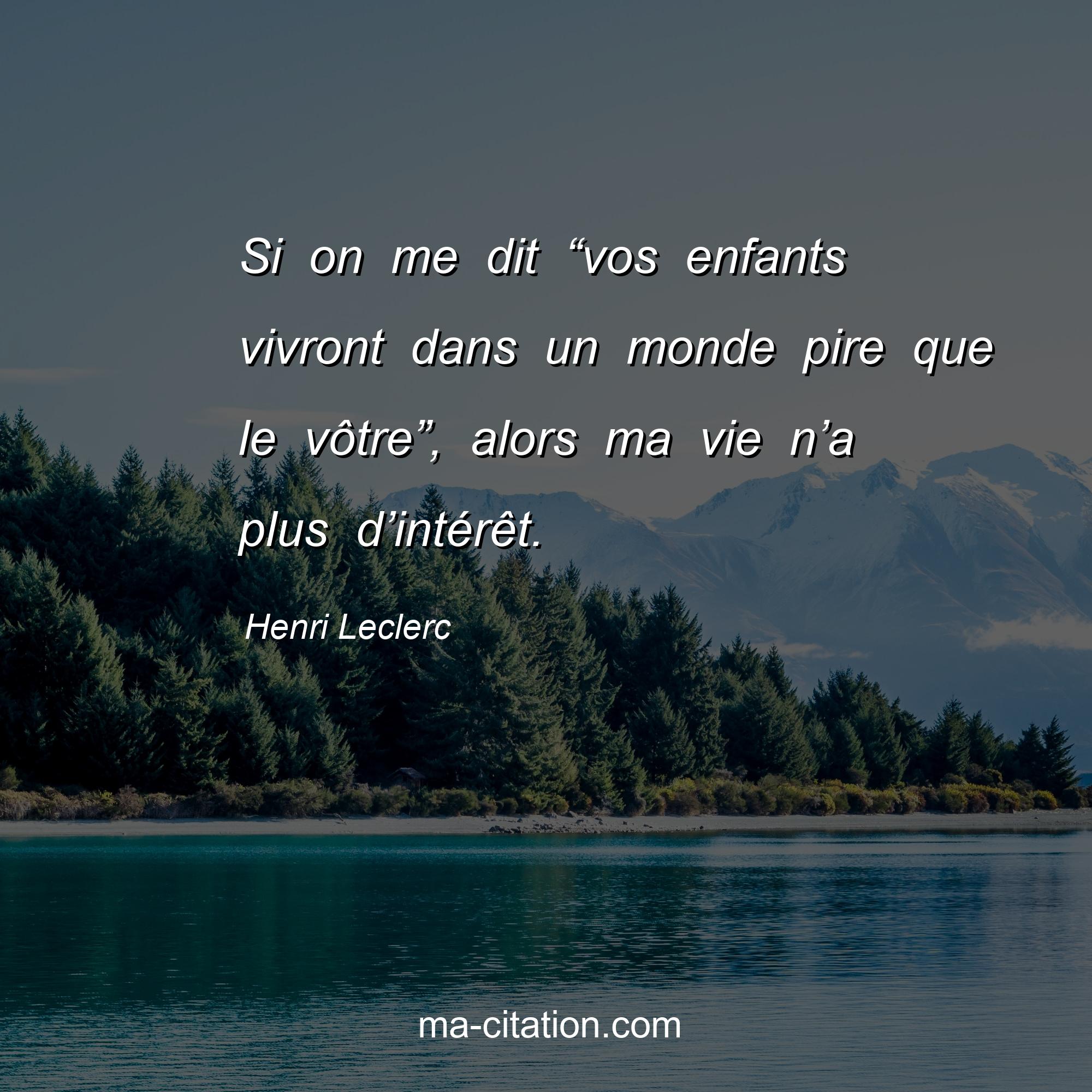 Citation sur la vie de Henri Leclerc :Si on me dit “vos enfants vivront dans un monde pire que le vôtreâ€, alors ma vie n’a plus d’intérêt.