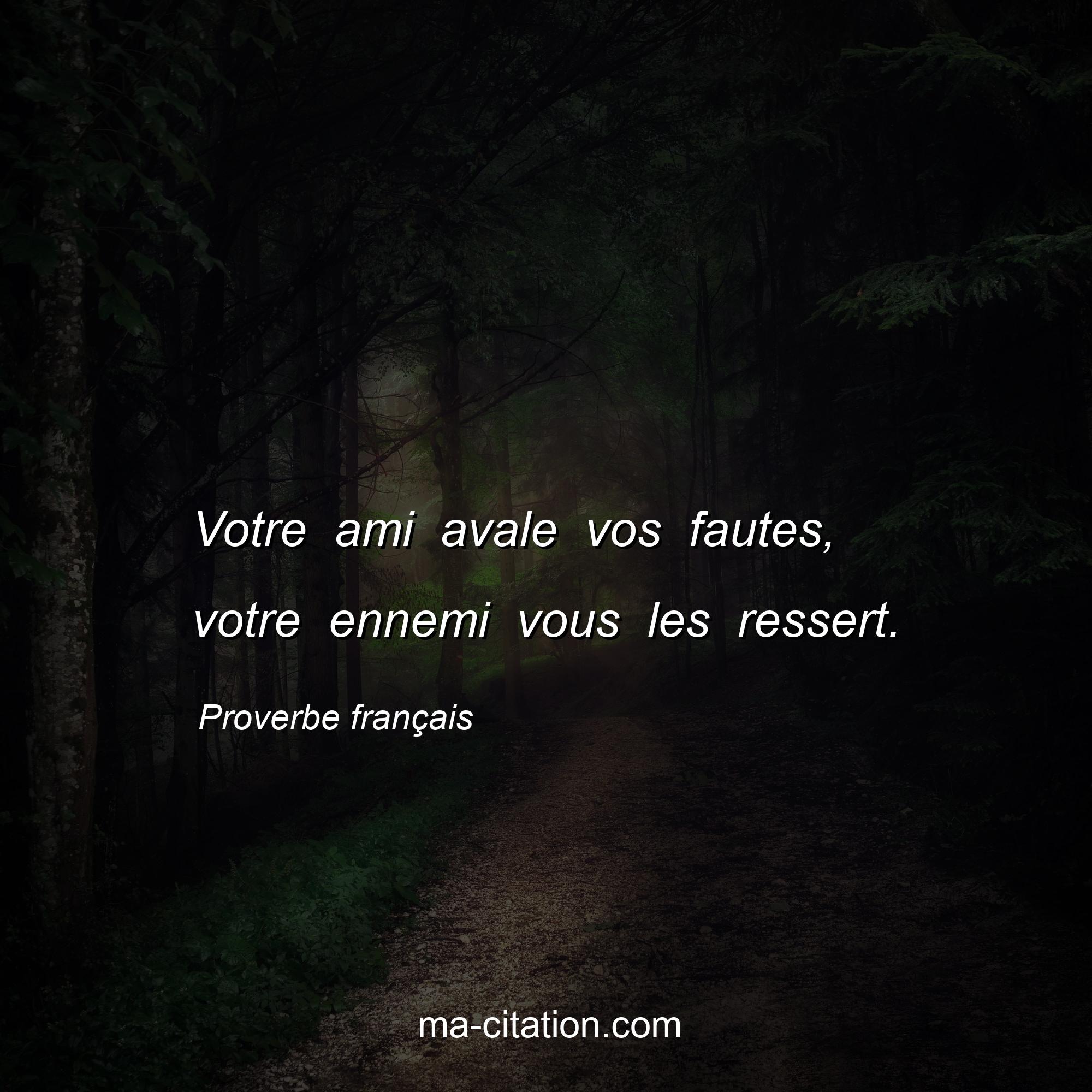 Proverbe français sur la vie :Votre ami avale vos fautes, votre ennemi vous les ressert.