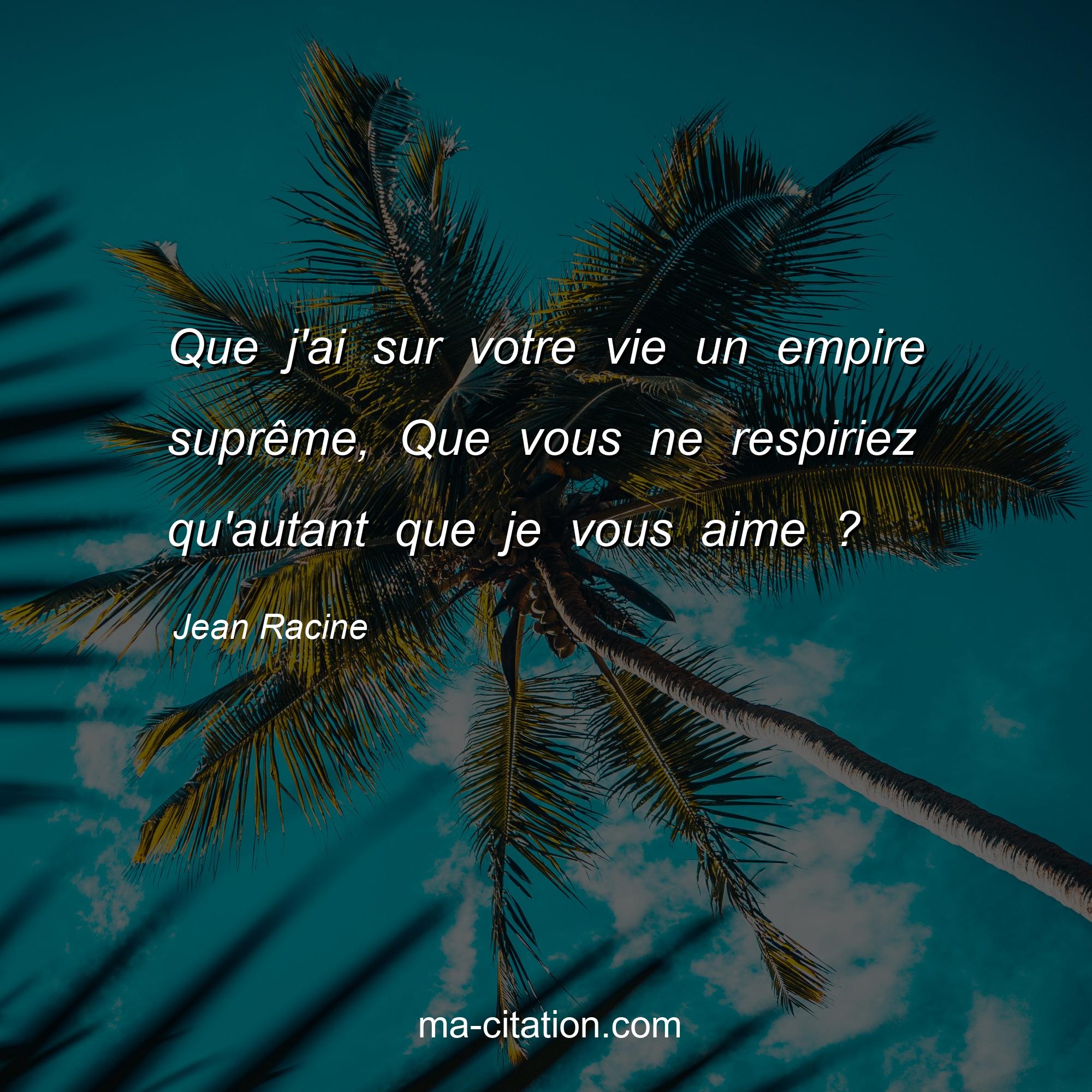 Citation sur la vie de Jean Racine :Que j'ai sur votre vie un empire suprême, Que vous ne respiriez qu'autant que je vous aime ?