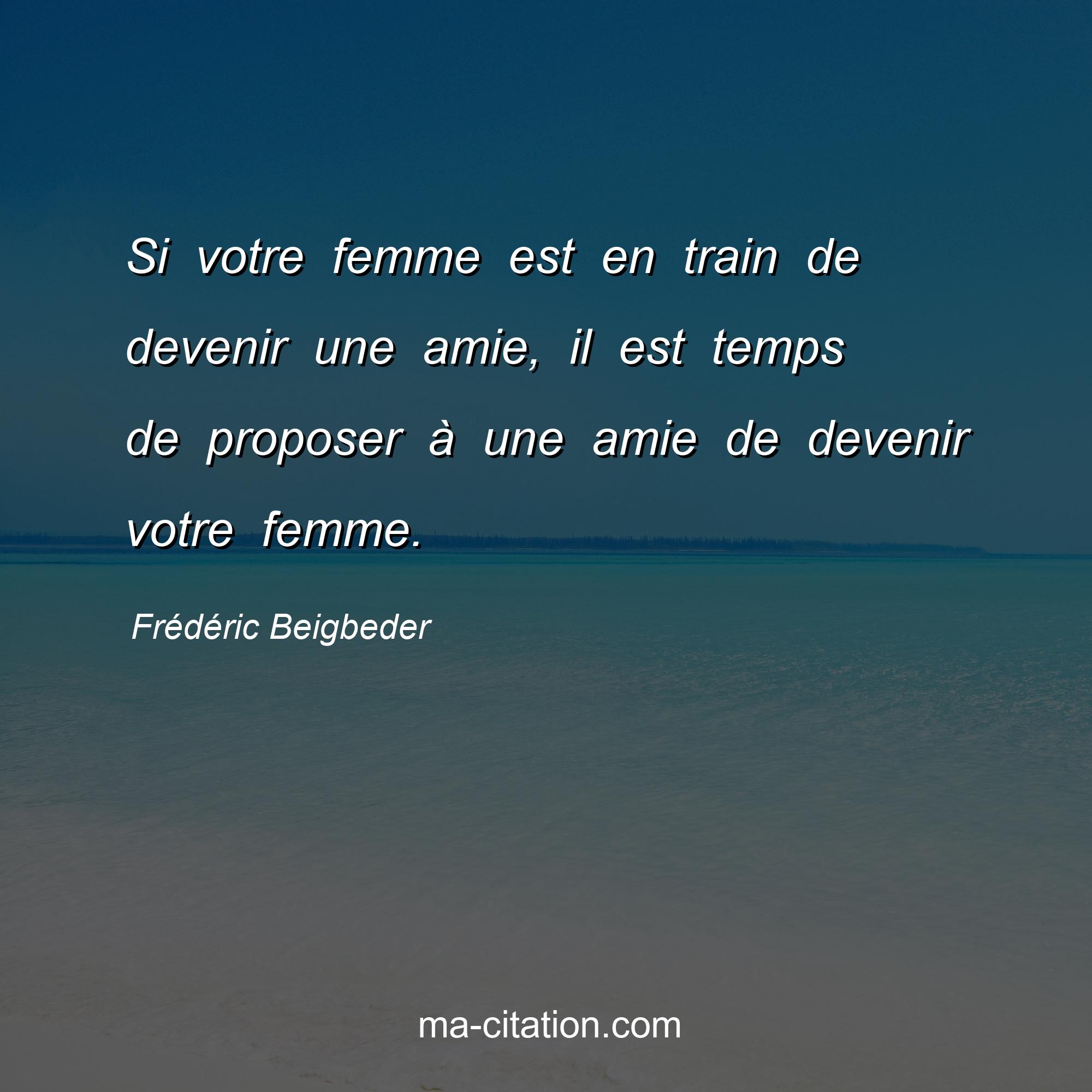 Citation sur la vie de Frédéric Beigbeder :Si votre femme est en train de devenir une amie, il est temps de proposer à une amie de devenir votre femme.