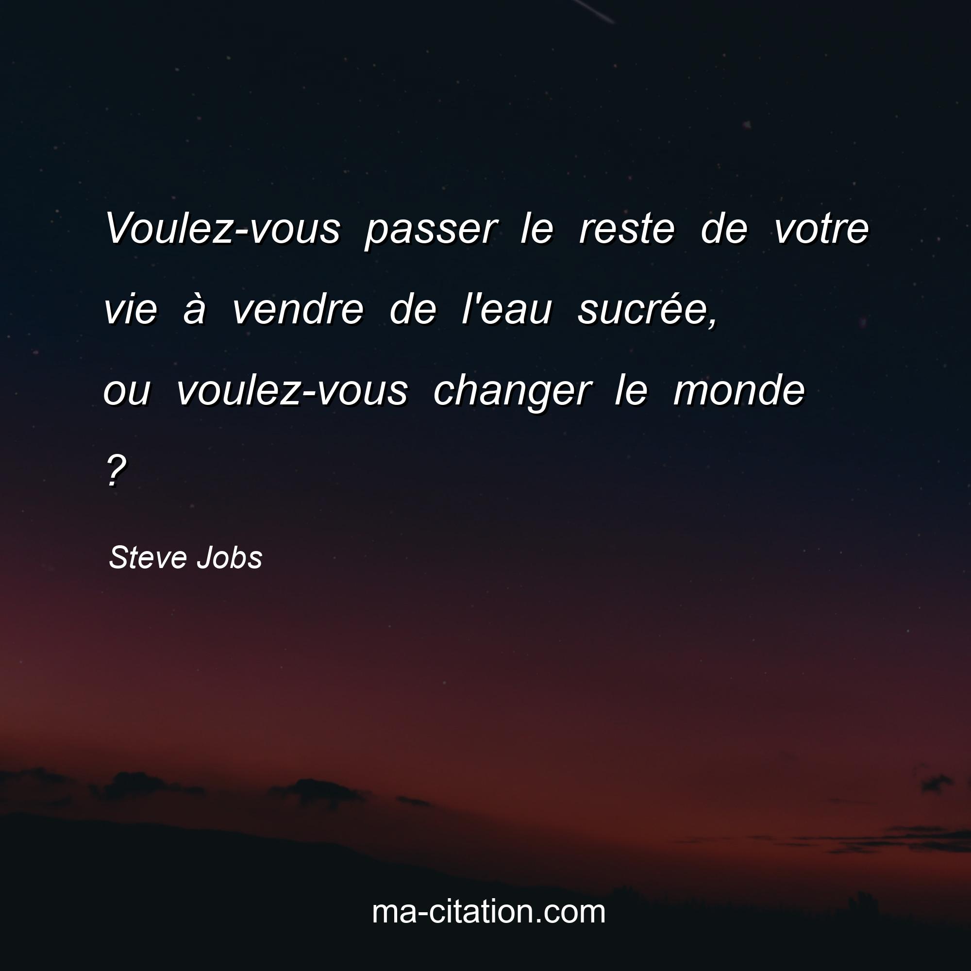 Citation sur la vie de Steve Jobs :Voulez-vous passer le reste de votre vie à vendre de l'eau sucrée, ou voulez-vous changer le monde ?