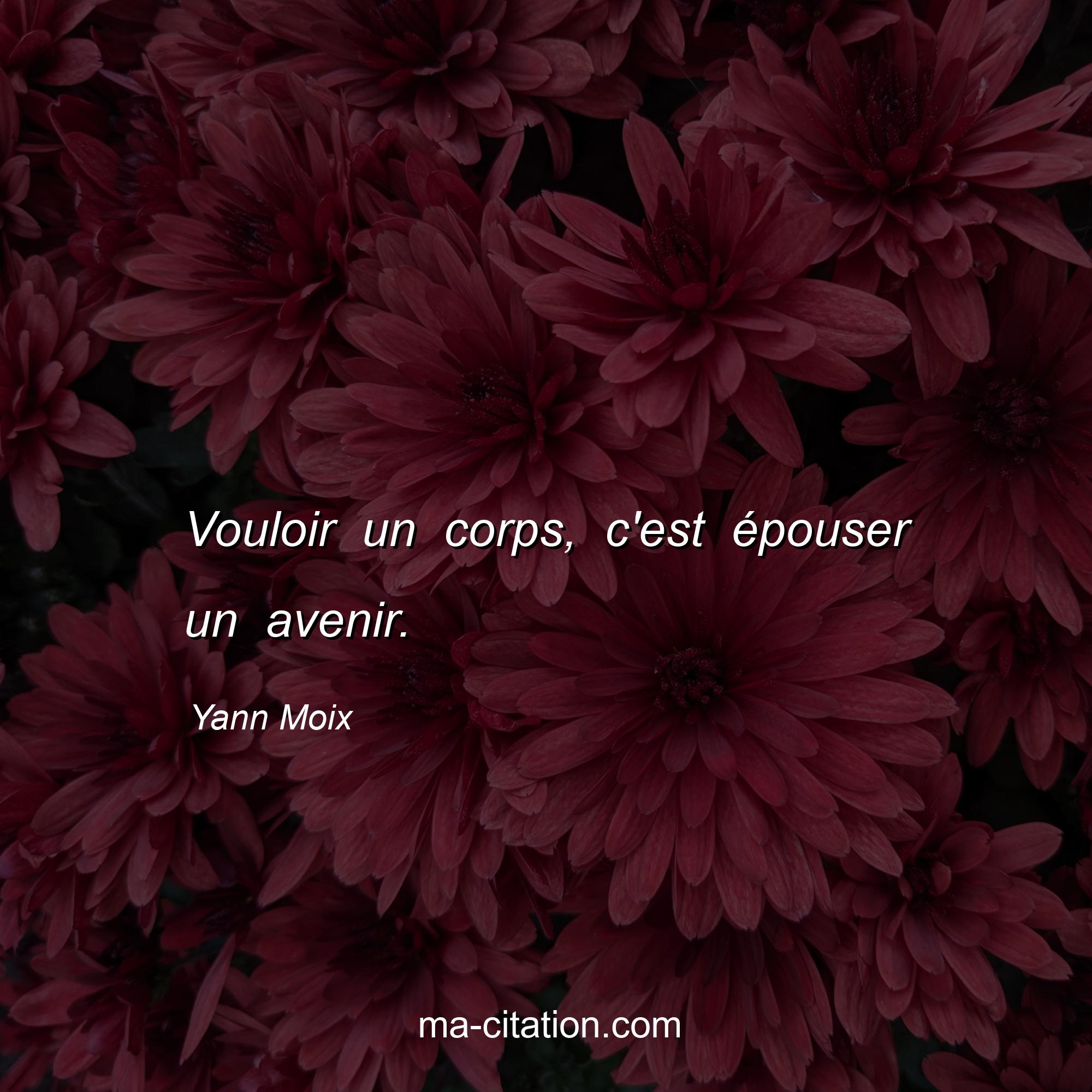 Citation sur la vie de Yann Moix :Vouloir un corps, c'est épouser un avenir.